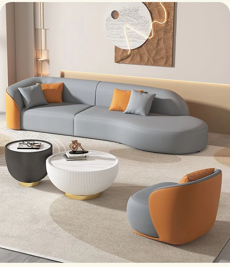 Six-seat sofa 125.98in segment/send 6 pillows (Orange + Gray)