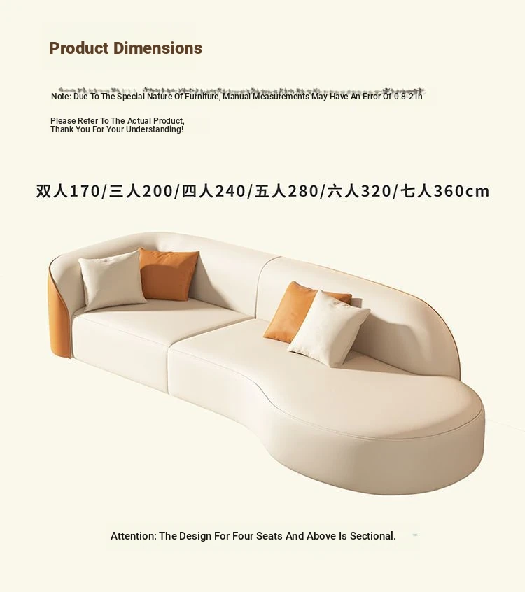 Five-person sofa 110.24in segment/send 5 pillows (Orange + White)