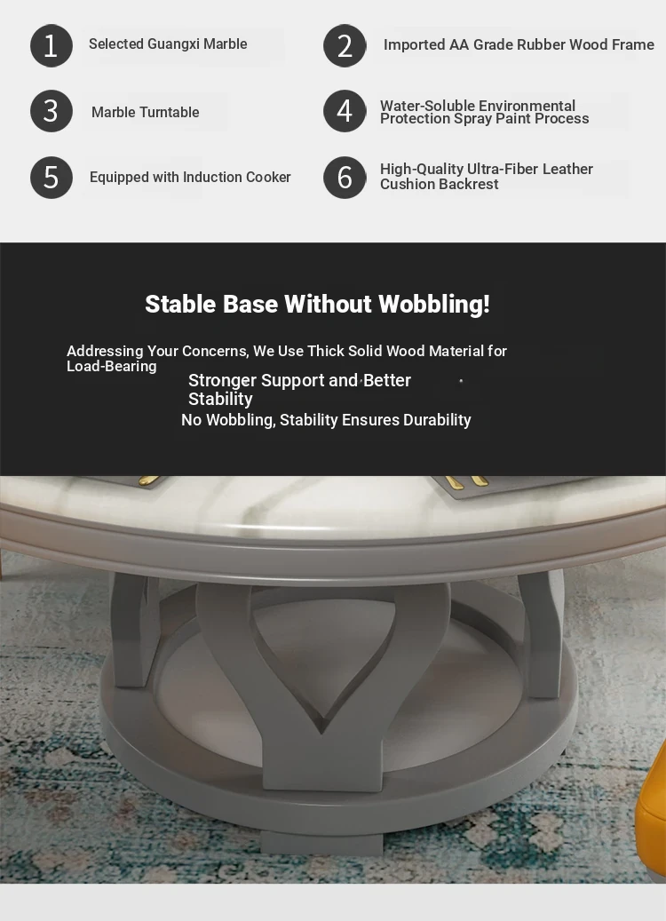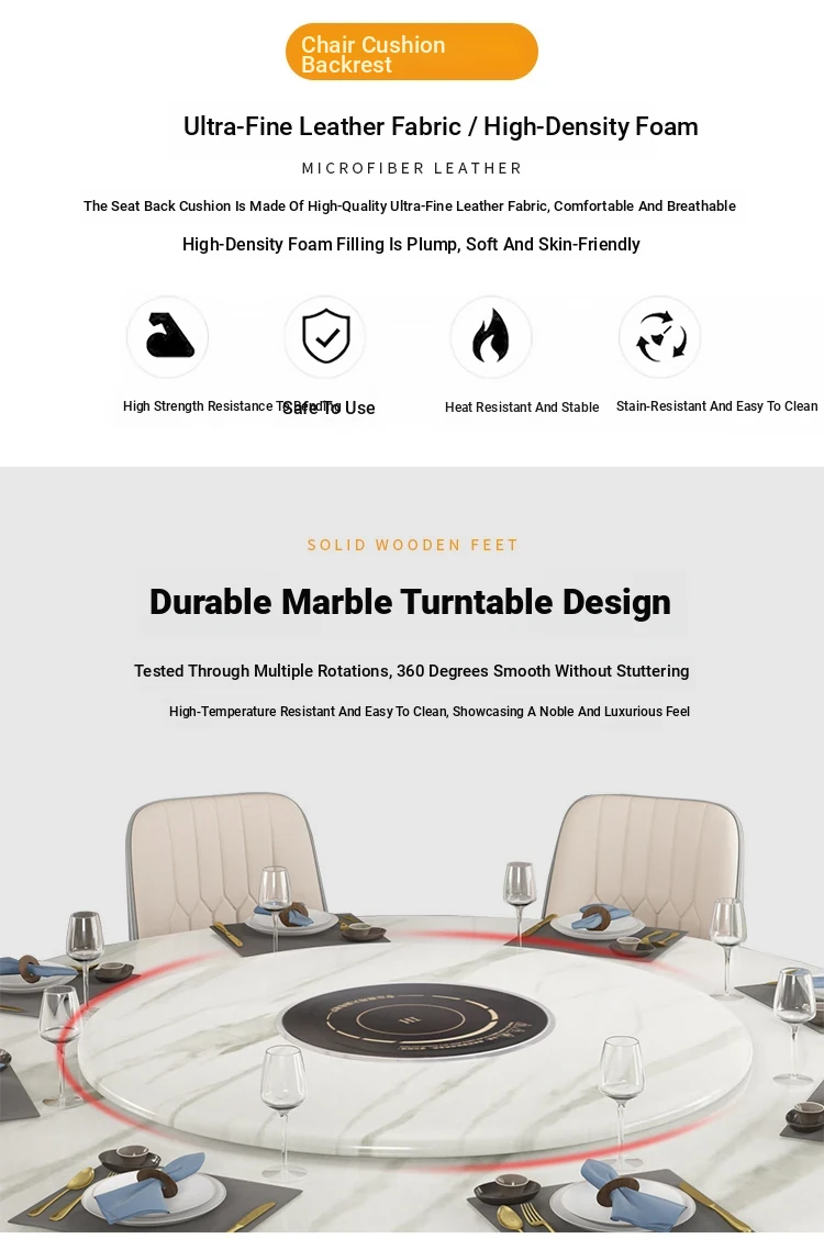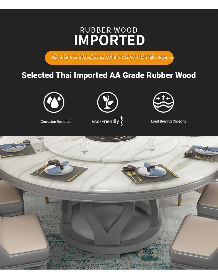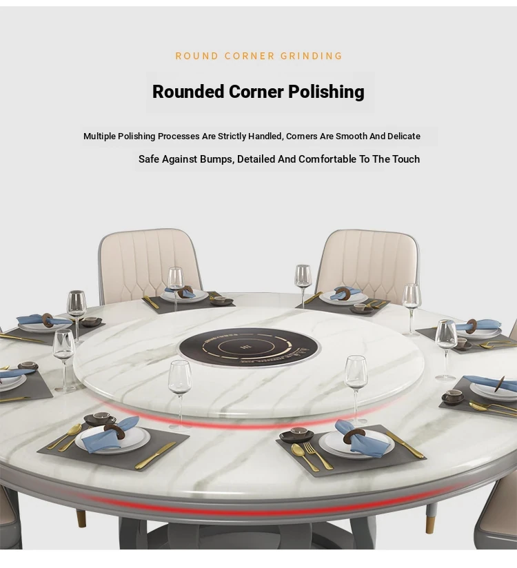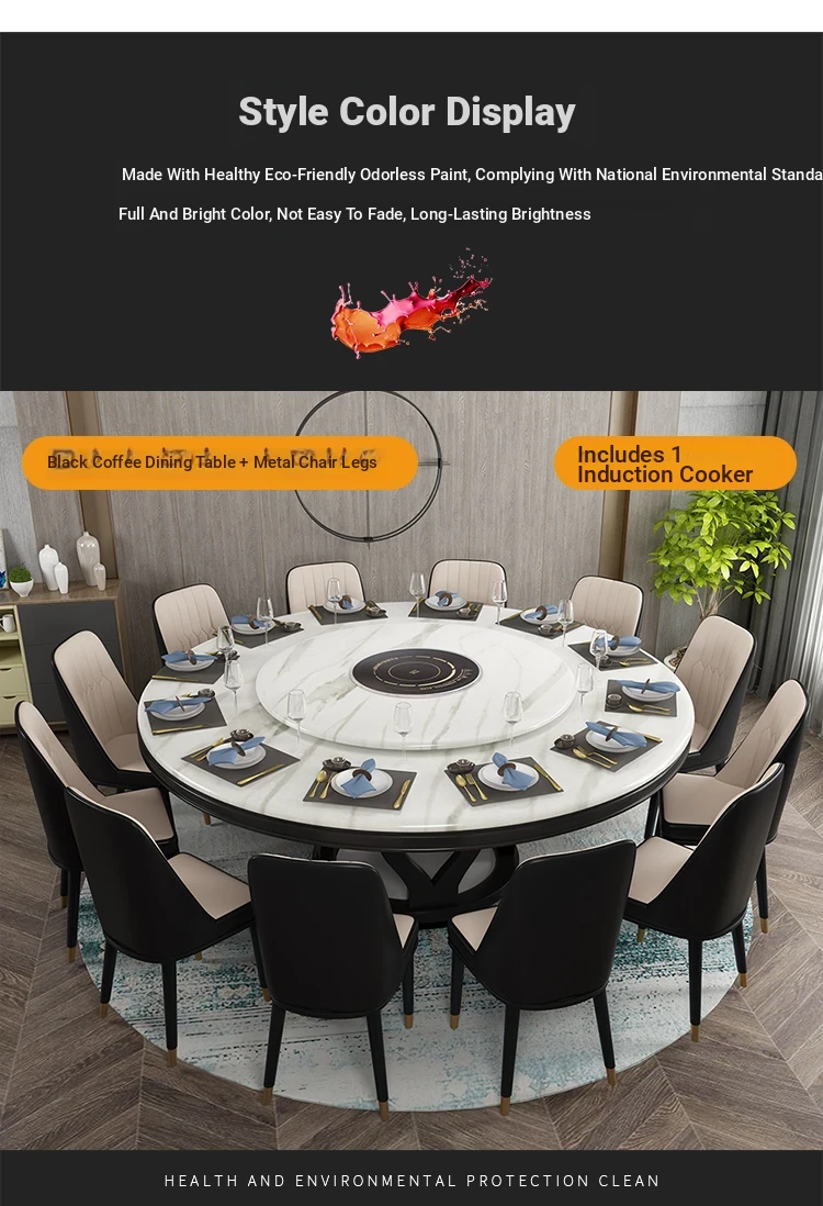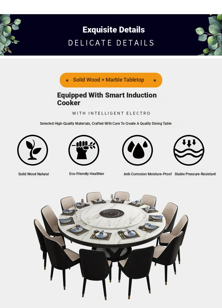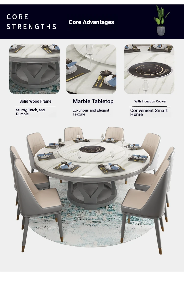 Modern Minimalist Marble Dining Table Set - Solid Wood Round Table for 10 People, Perfect for Home and Hotel Use, Ideal for Hotpot and Induction Cooking.