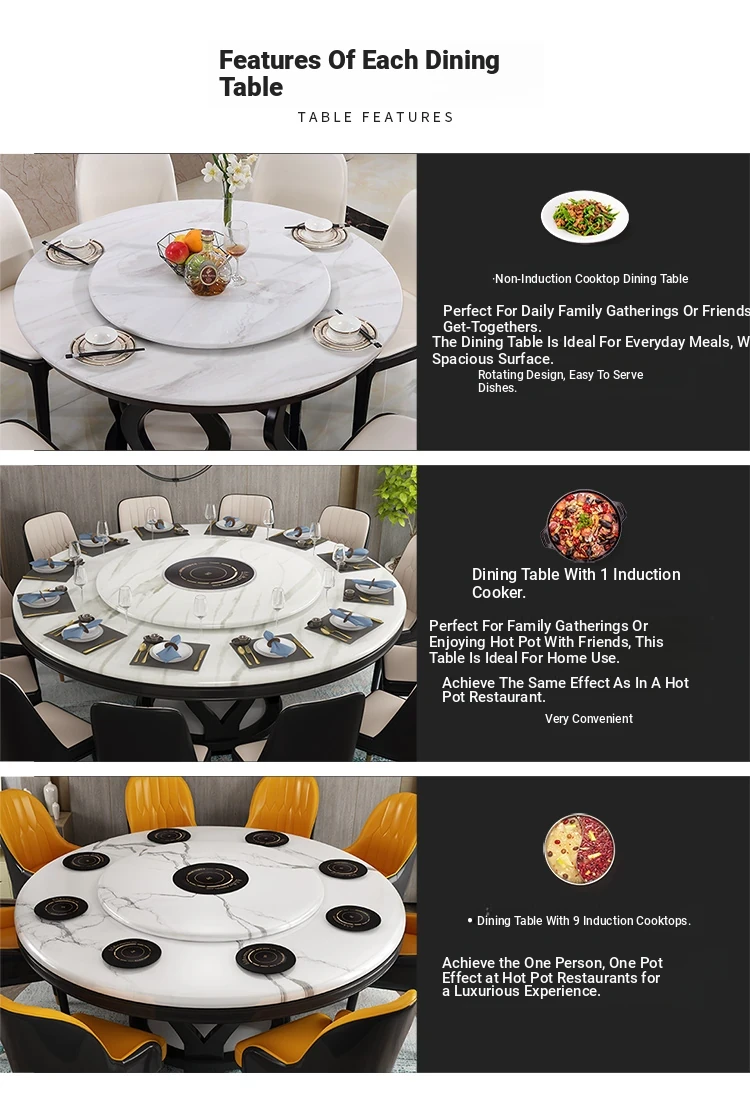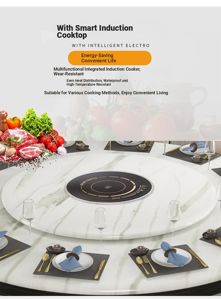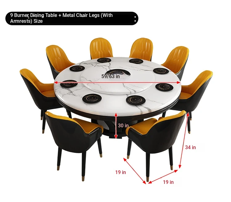 59.06 ins a table of 10 chairs in the middle of a Induction cooker to send turntable
