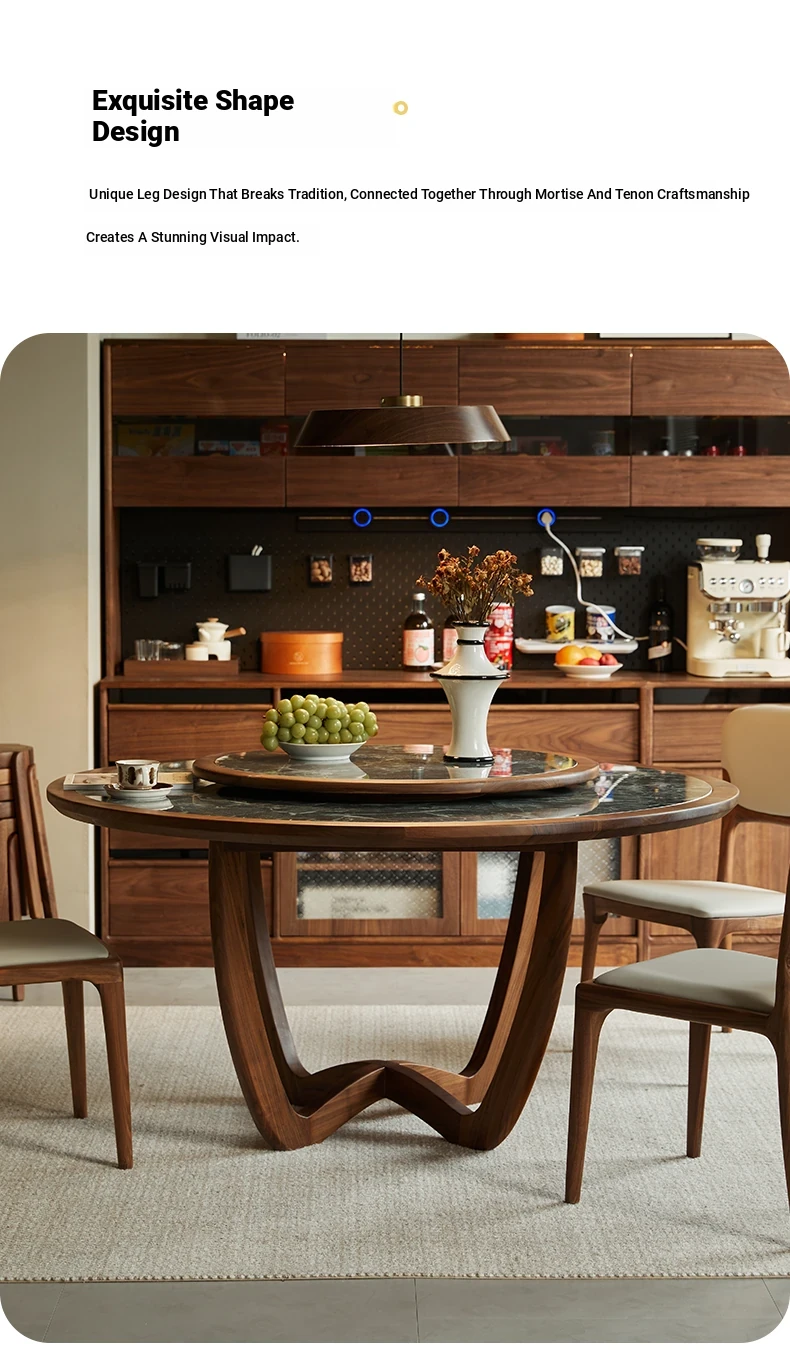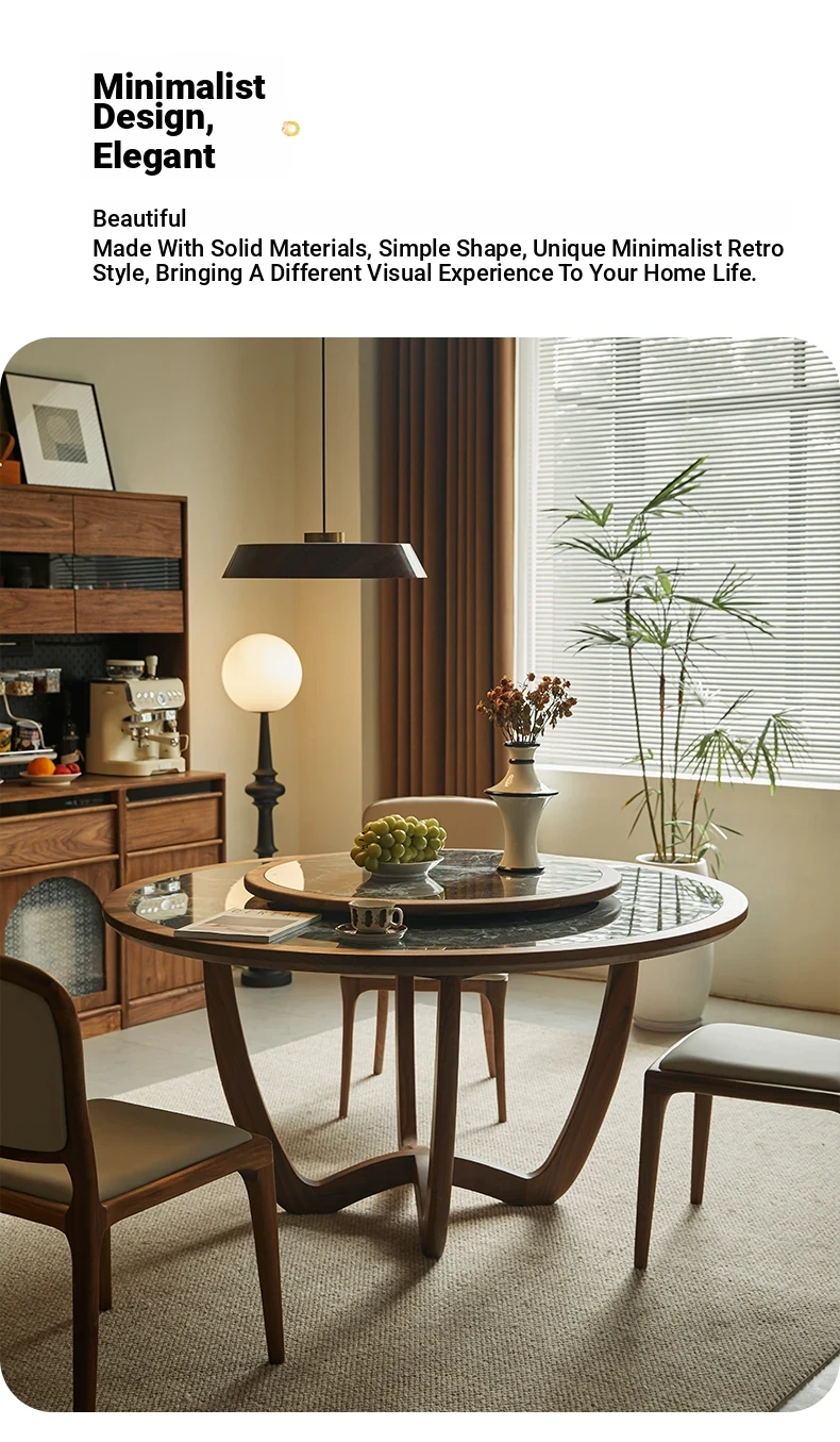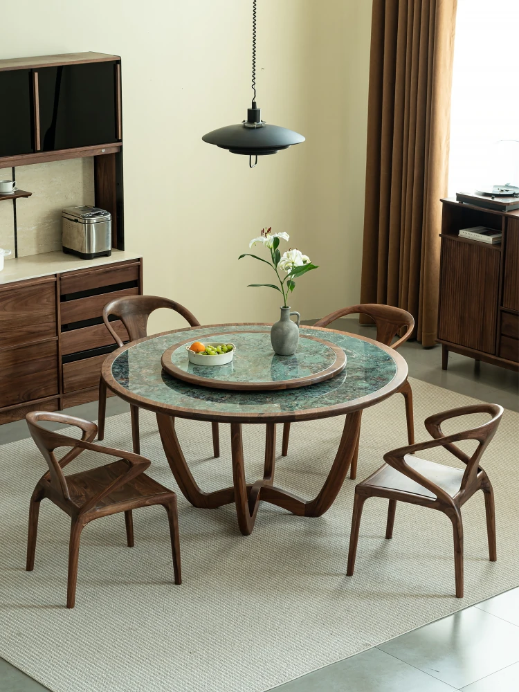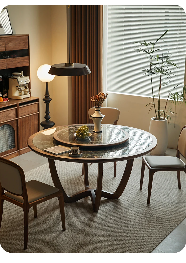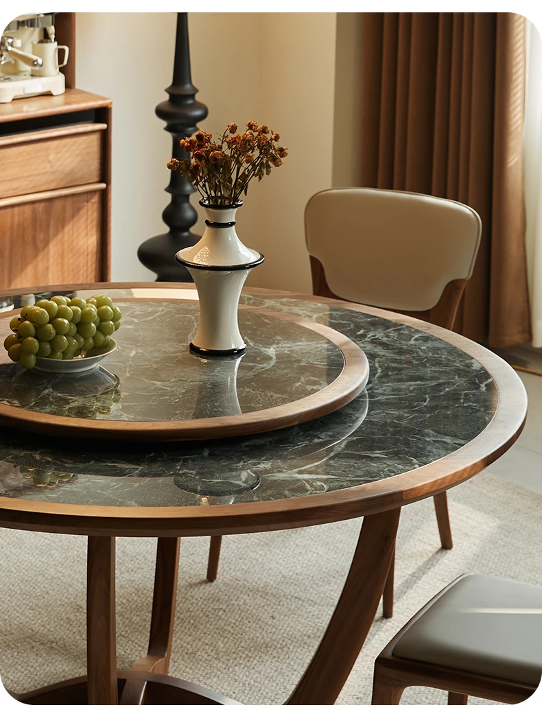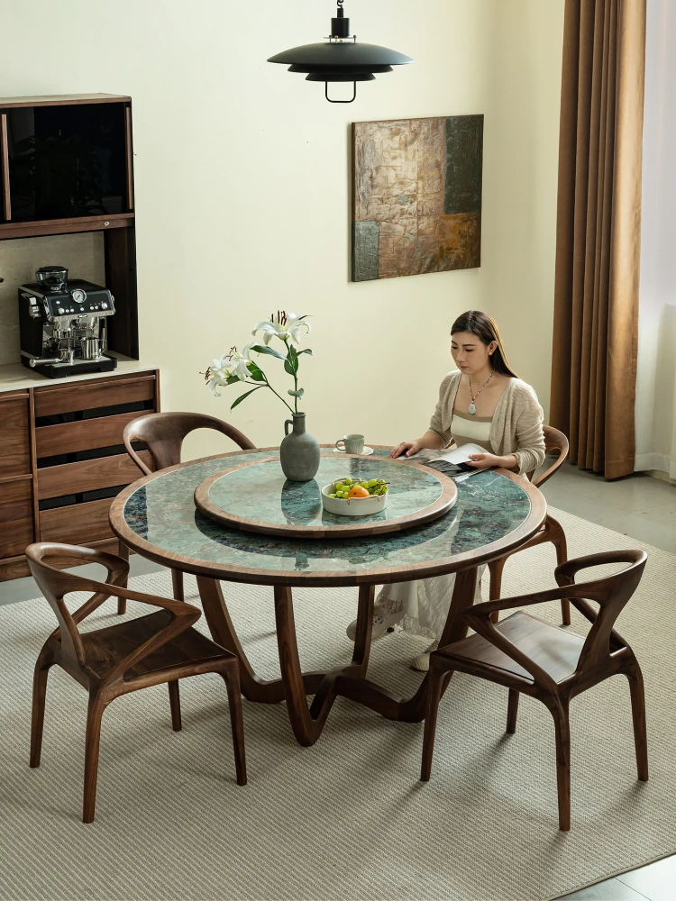 Modern Minimalist Round Dining Table in North American Black Walnut - Luxurious Natural Wood Dining Table for Villas and Home Use with Elegant Rock Slab Top