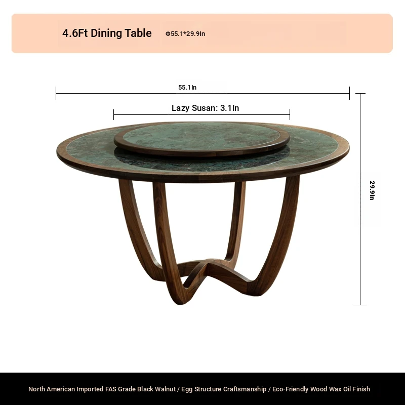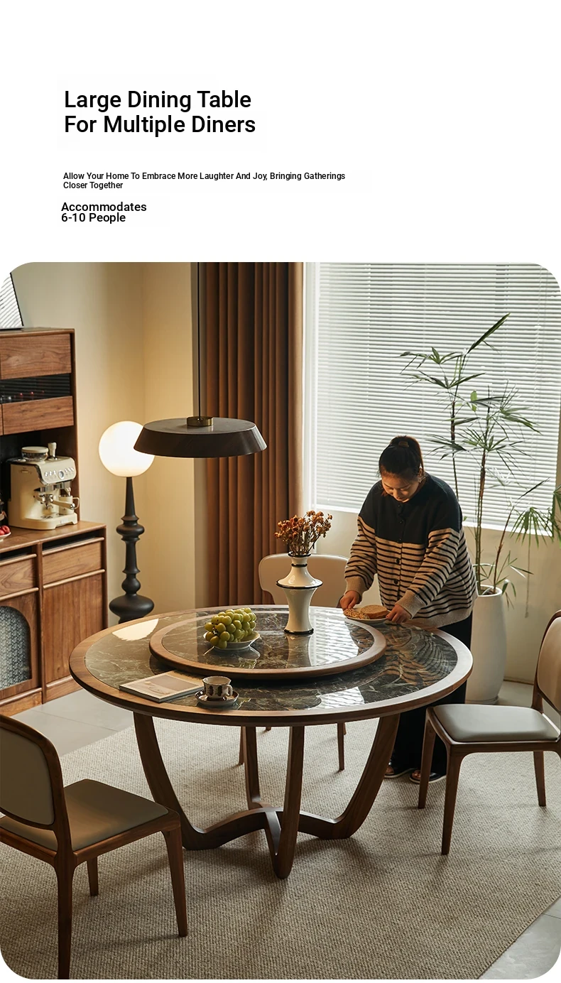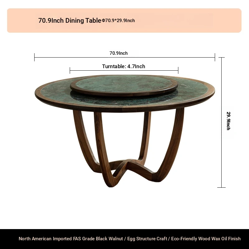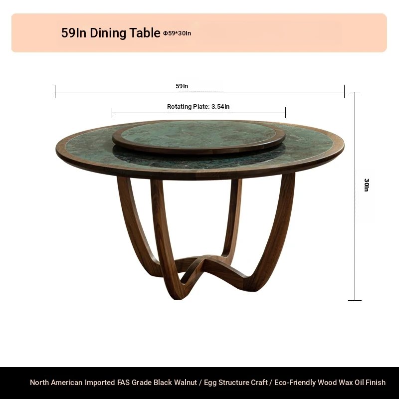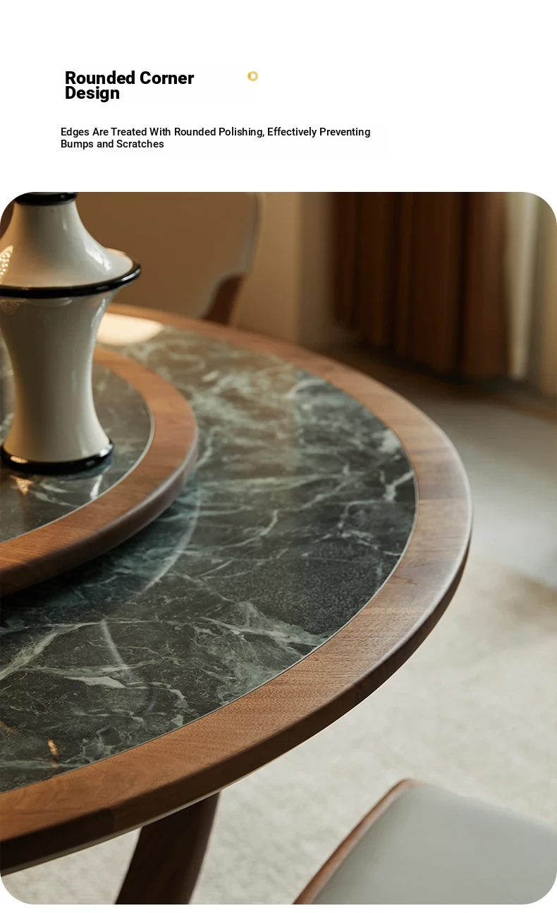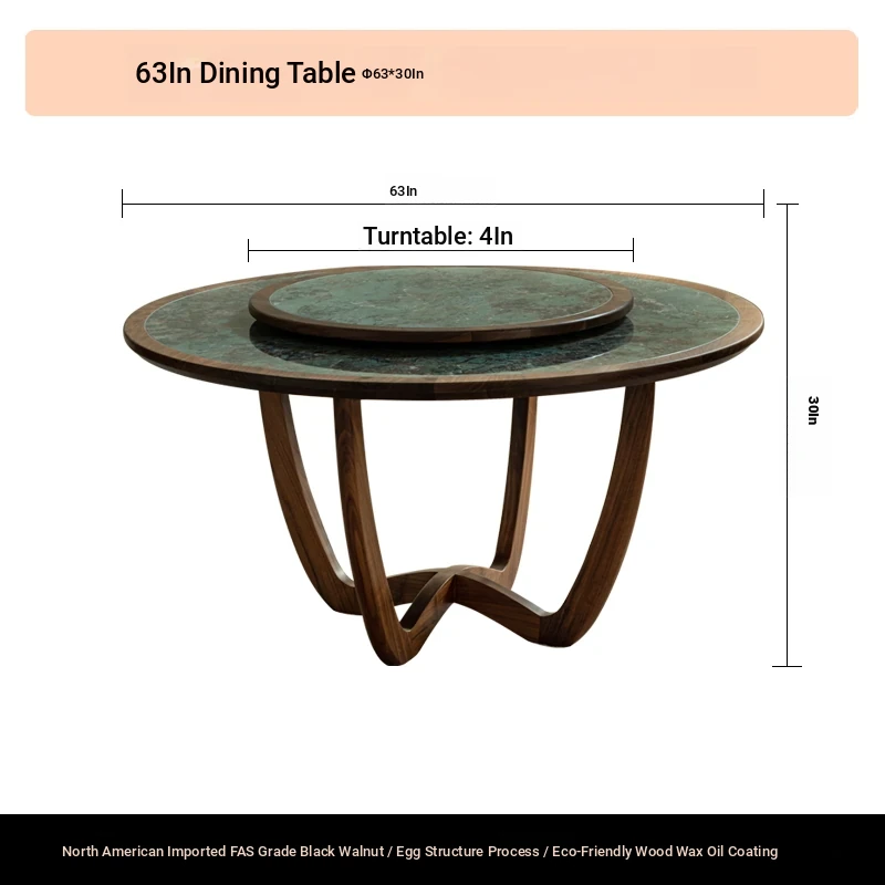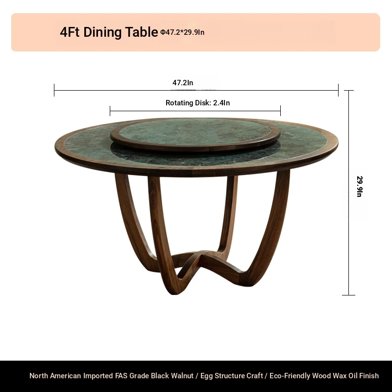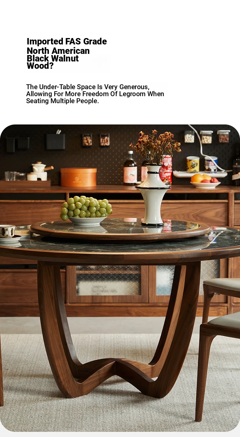 Modern Minimalist Round Dining Table in North American Black Walnut - Luxurious Natural Wood Dining Table for Villas and Home Use with Elegant Rock Slab Top