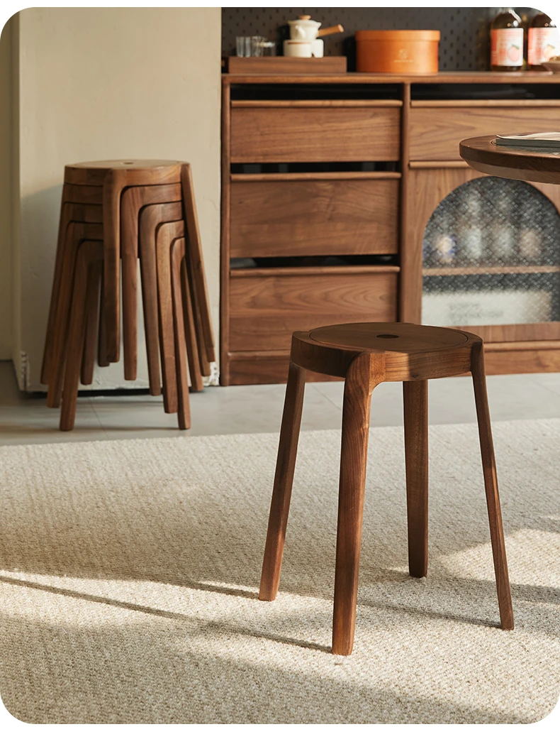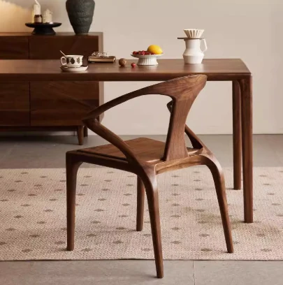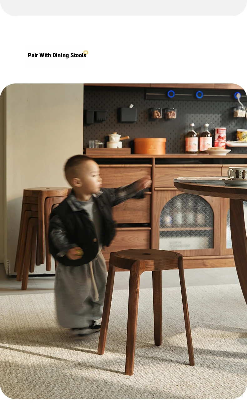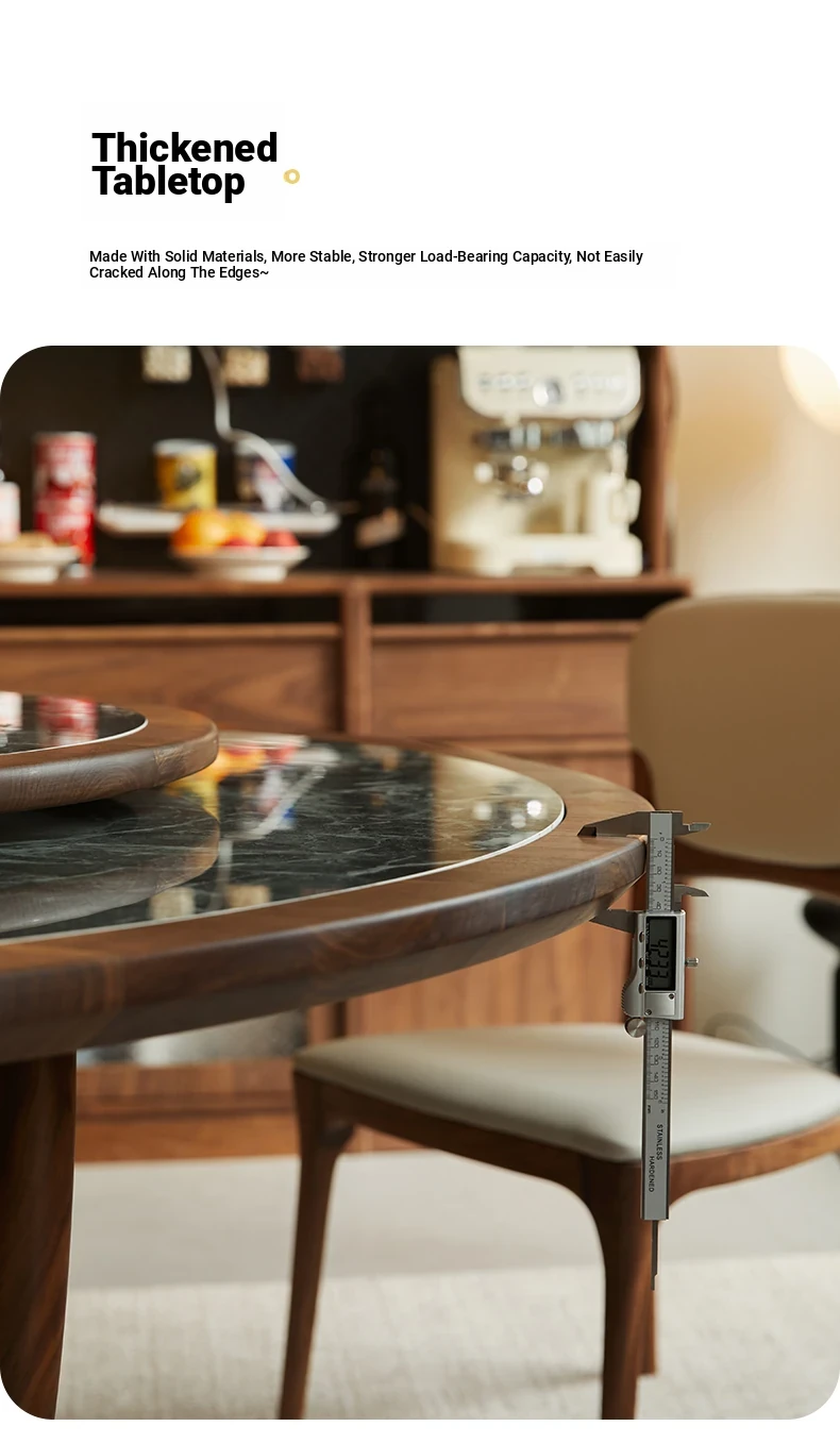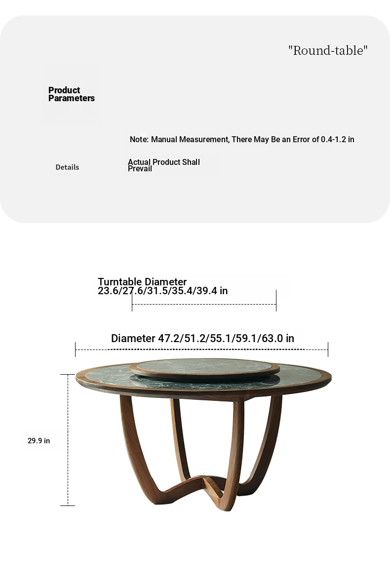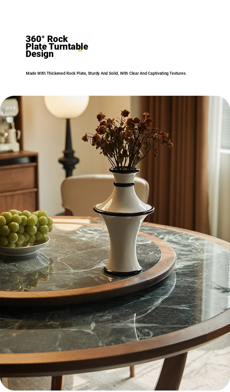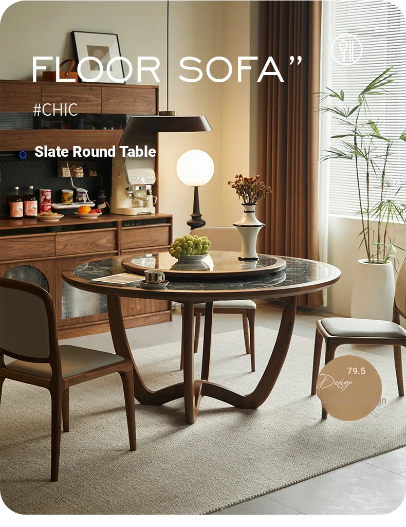 Modern Minimalist Round Dining Table in North American Black Walnut - Luxurious Natural Wood Dining Table for Villas and Home Use with Elegant Rock Slab Top