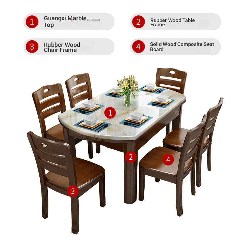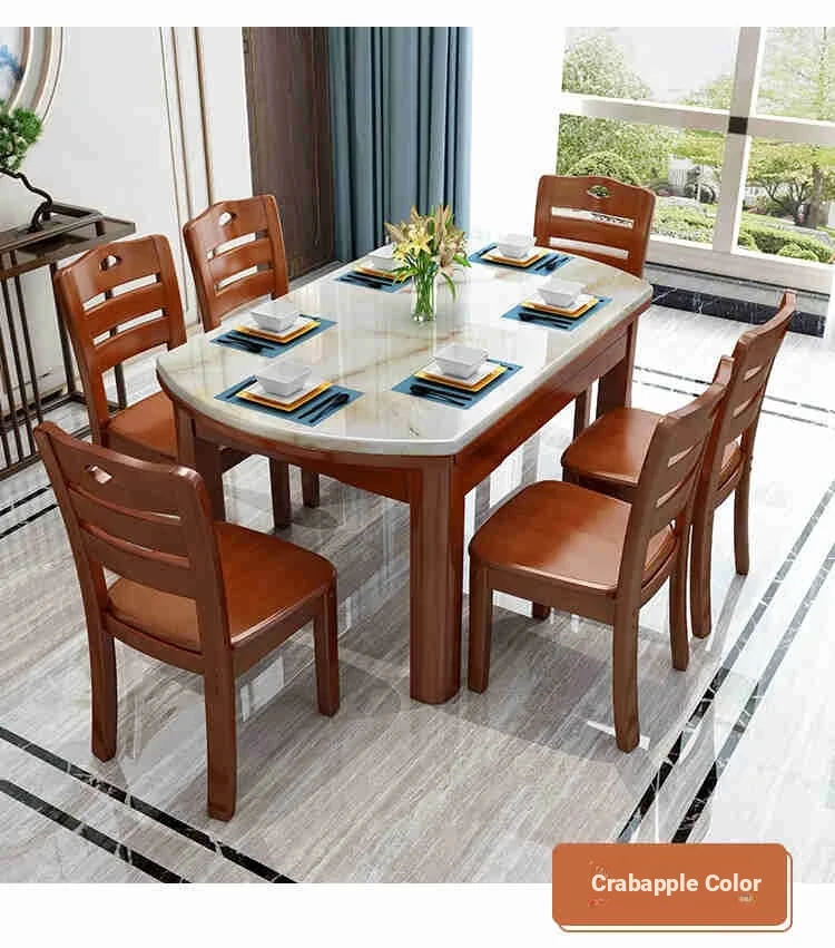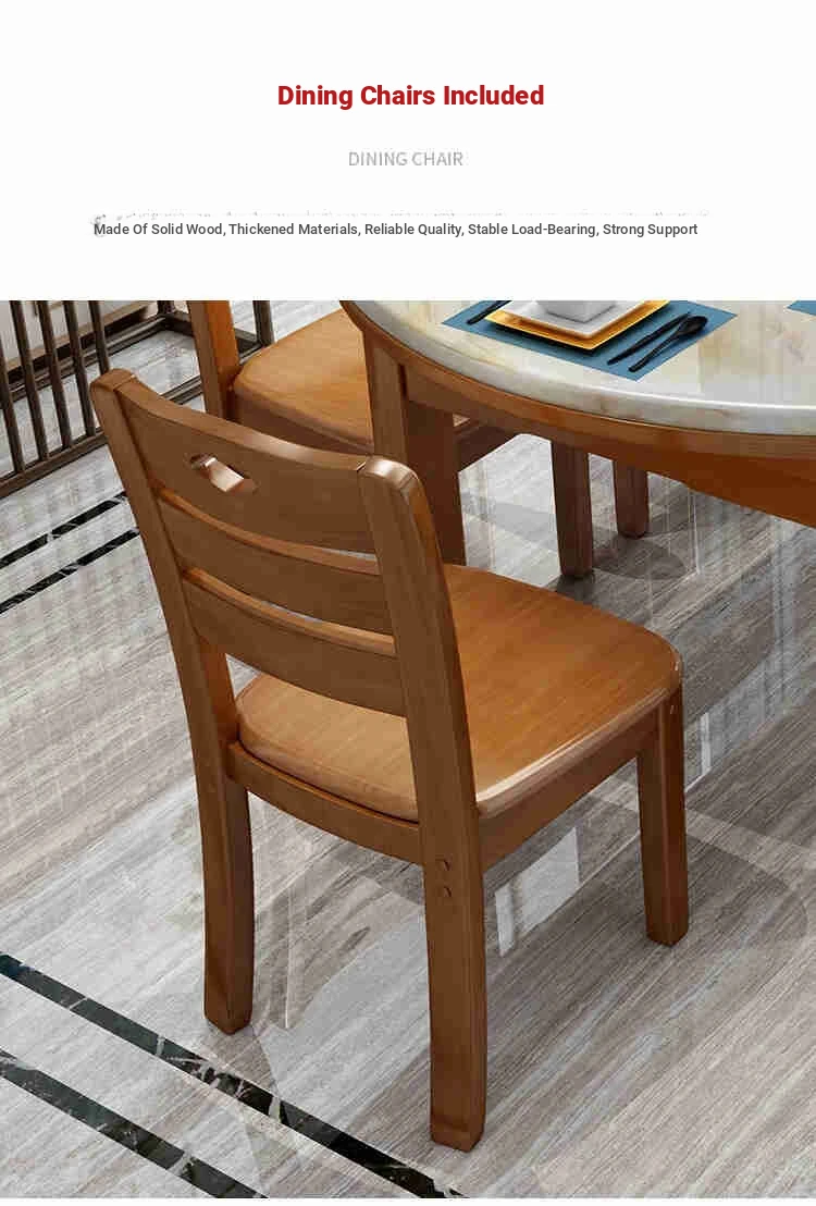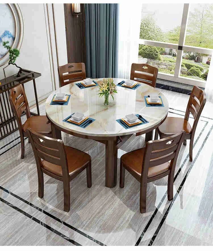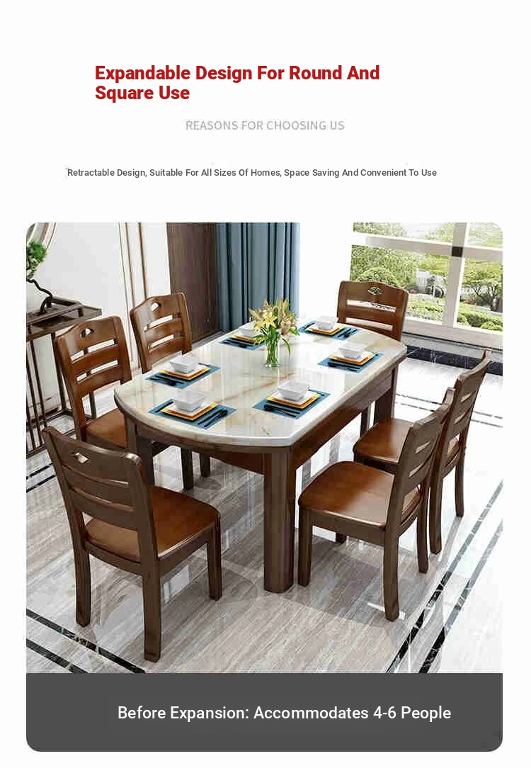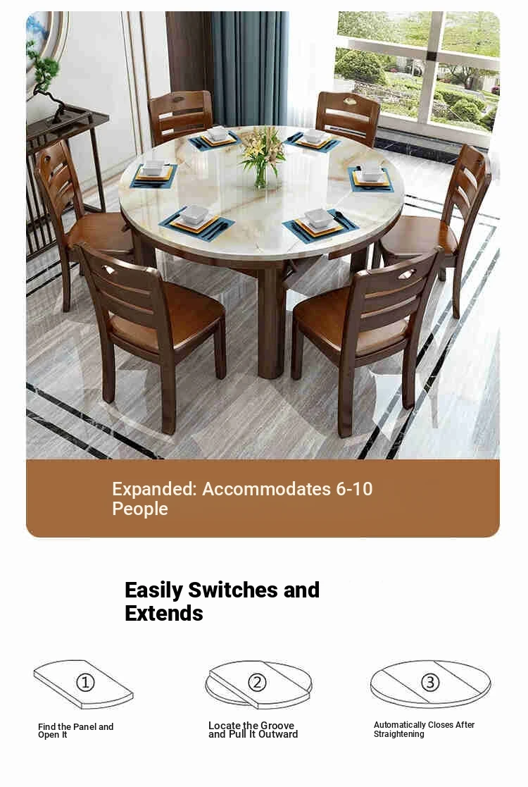 Modern Minimalist Solid Wood Dining Table and Chair Set with Expandable Round Marble Table - Perfect for Small Spaces