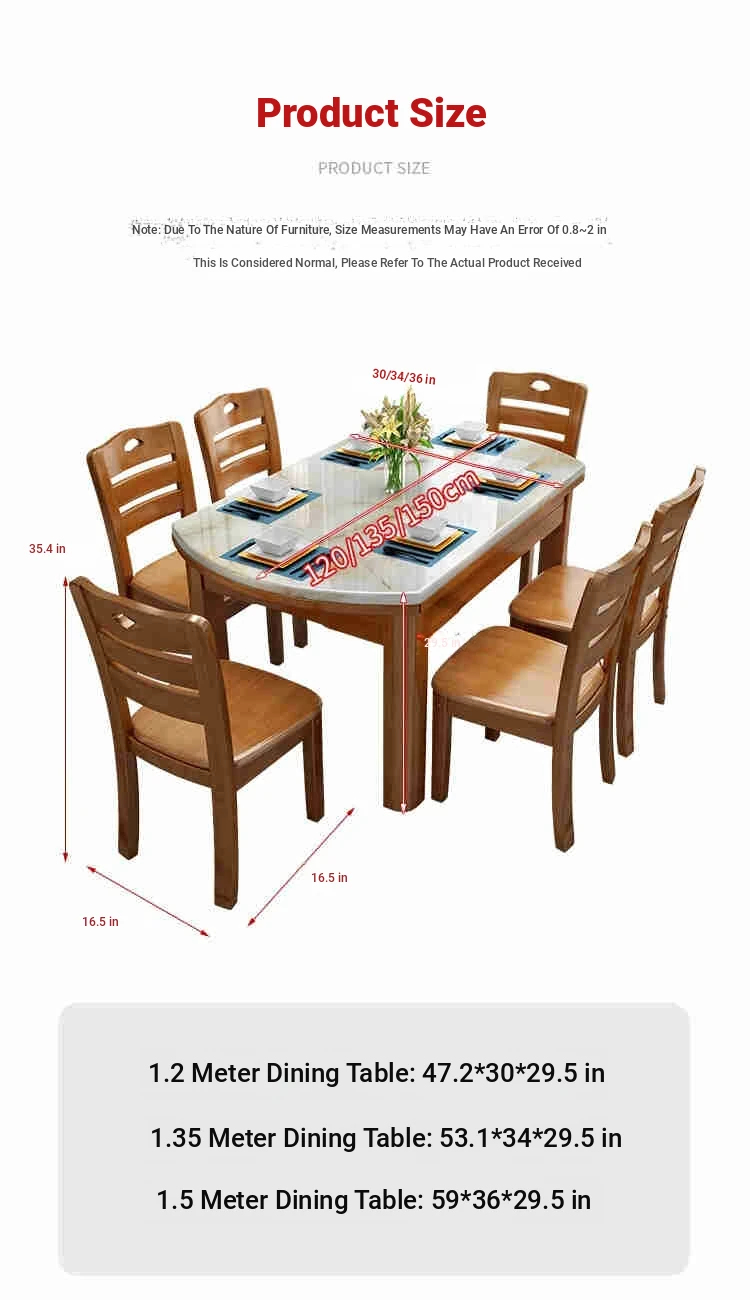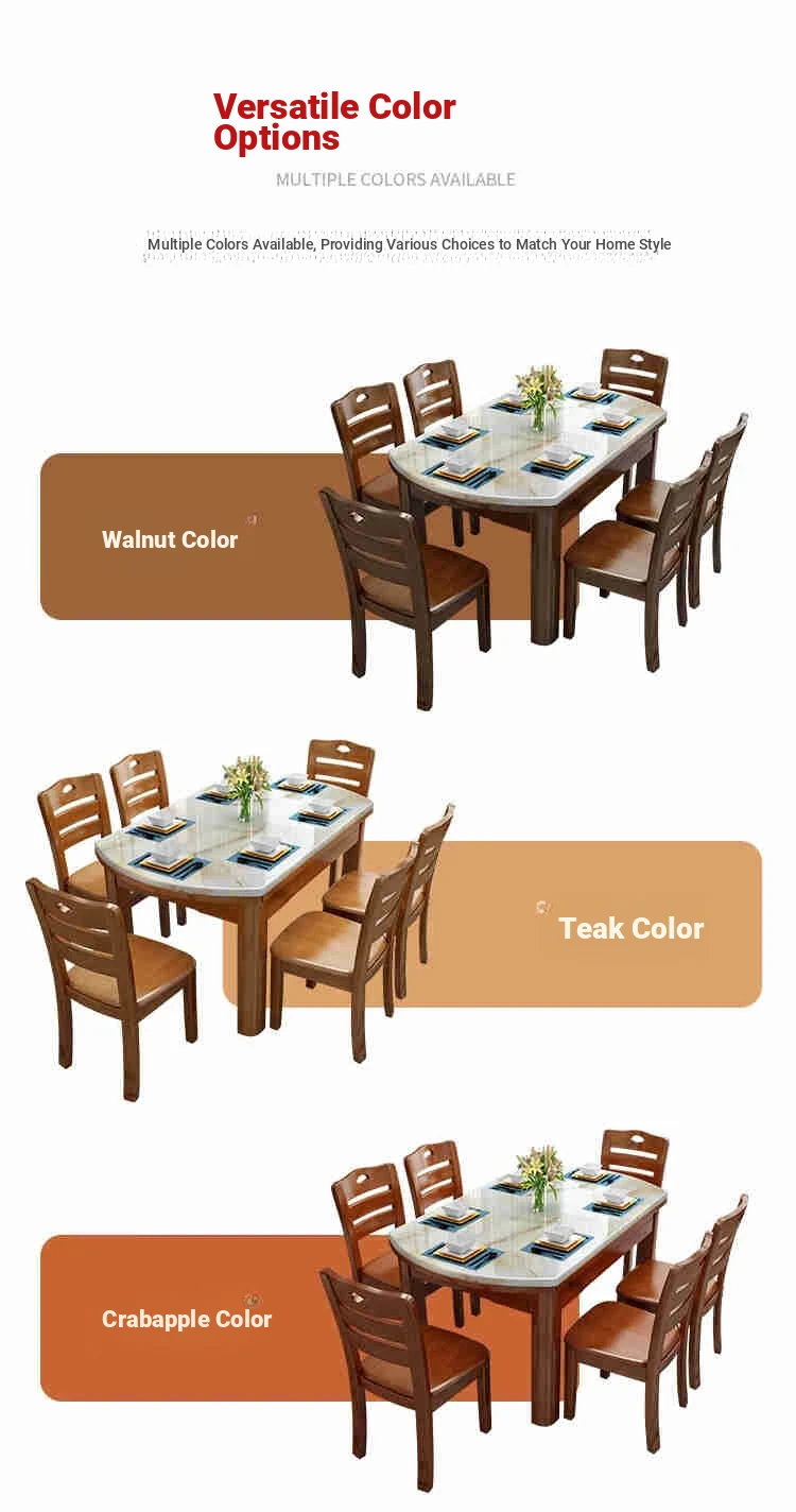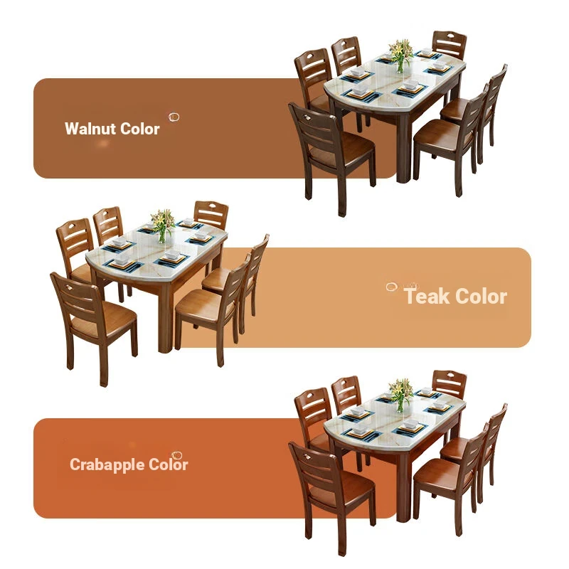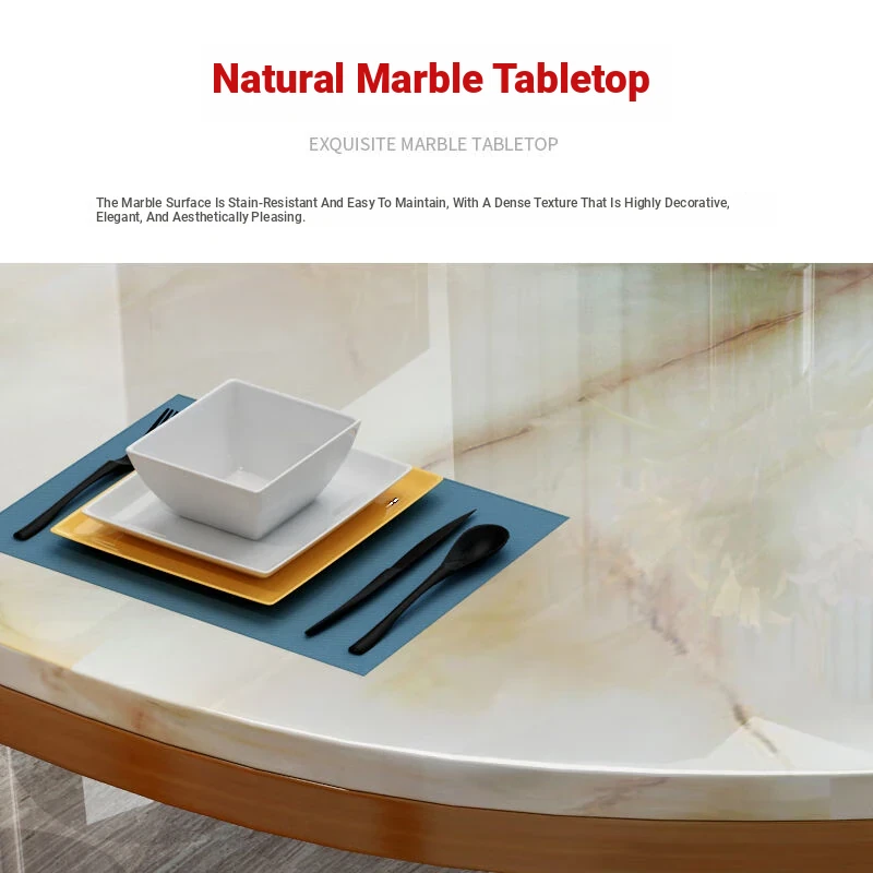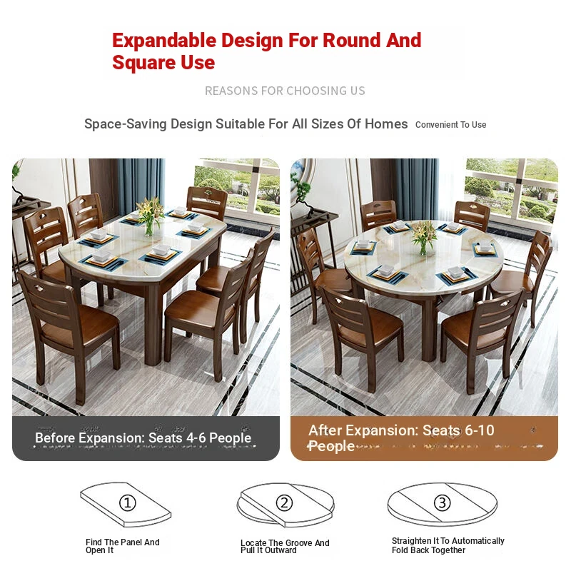 Modern Minimalist Solid Wood Dining Table and Chair Set with Expandable Round Marble Table - Perfect for Small Spaces