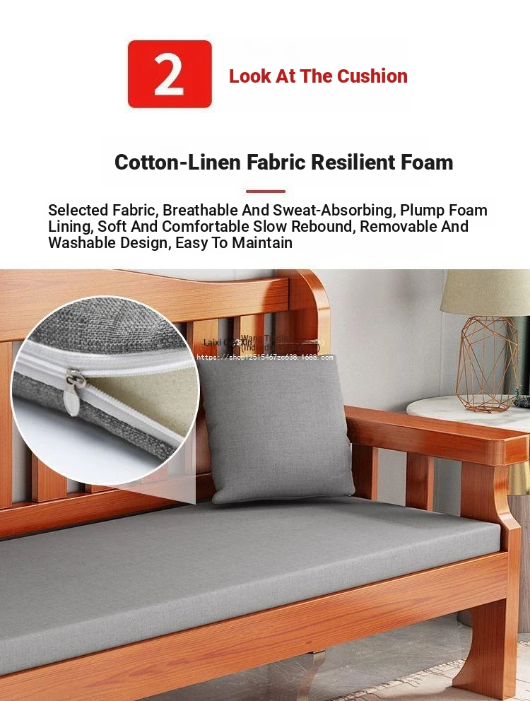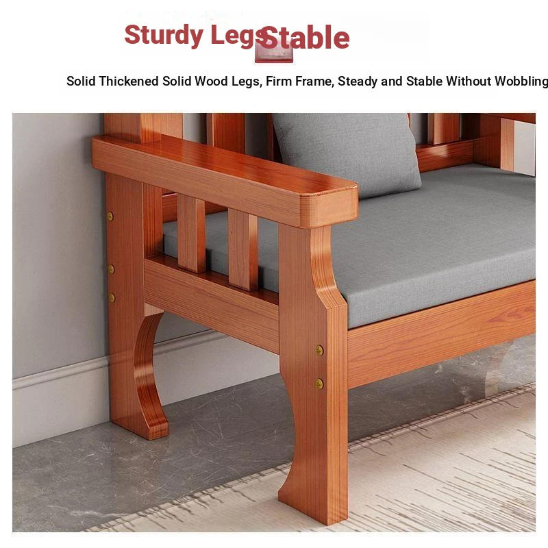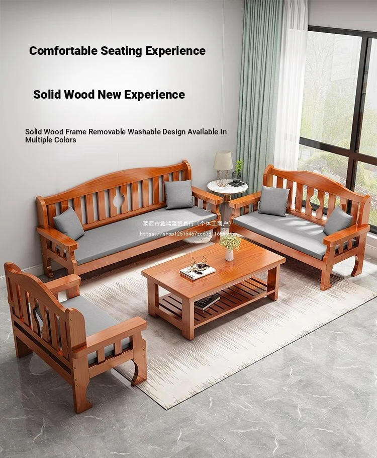Modern Minimalist Solid Wood Sofa for Small Spaces - Three-Seat Combination with Rustic New Chinese Style, All Solid Wood Long Bench for Living Room