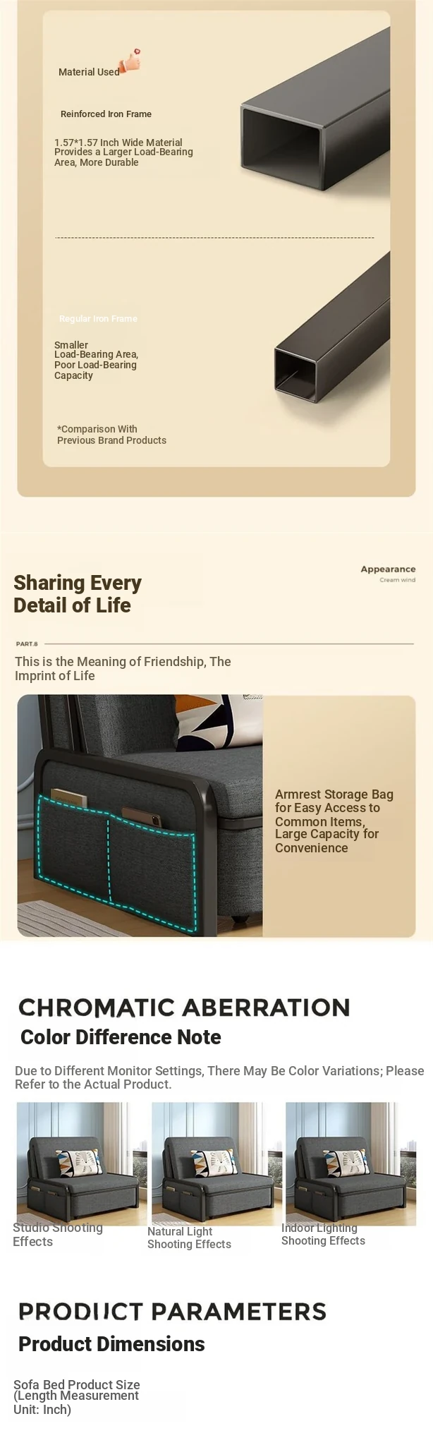 Multi-Functional Foldable Sofa Bed – Space-Saving Design for Small Living Rooms, Perfect for Couples or Singles, Versatile and Stylish!