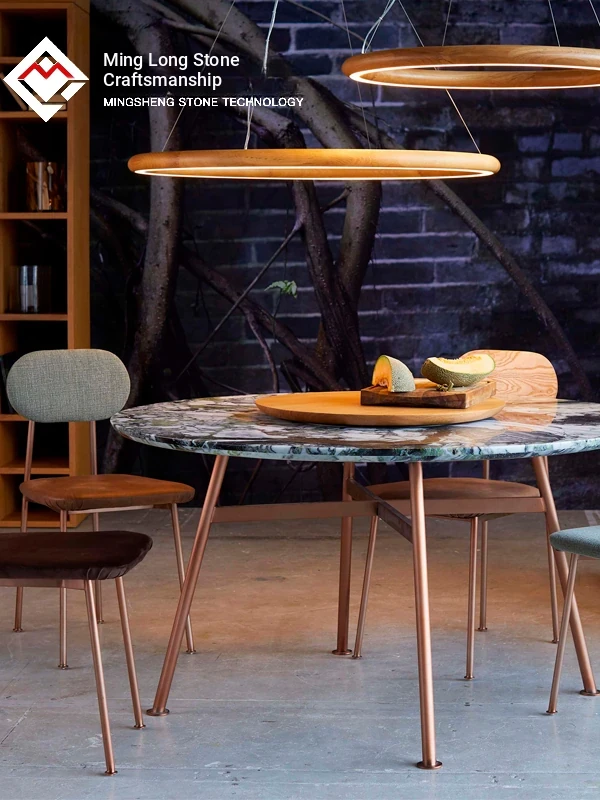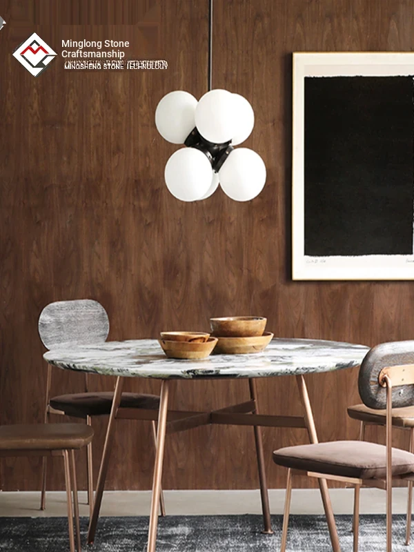Natural Marble Cold Jade Round Dining Table with Turntable - Lightweight Luxury Design for Home Use, Perfect for Small to Medium-Sized Spaces, Elegant and Minimalist Style