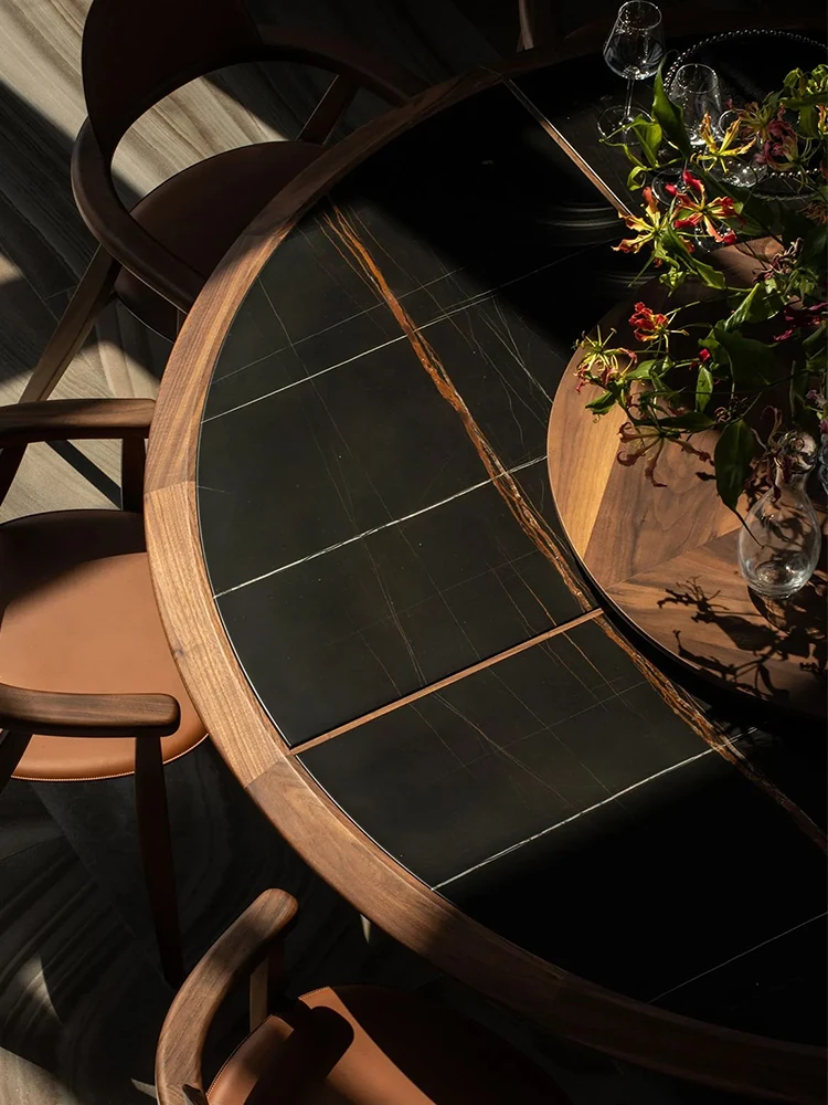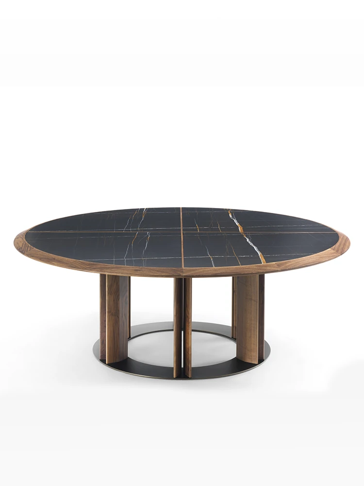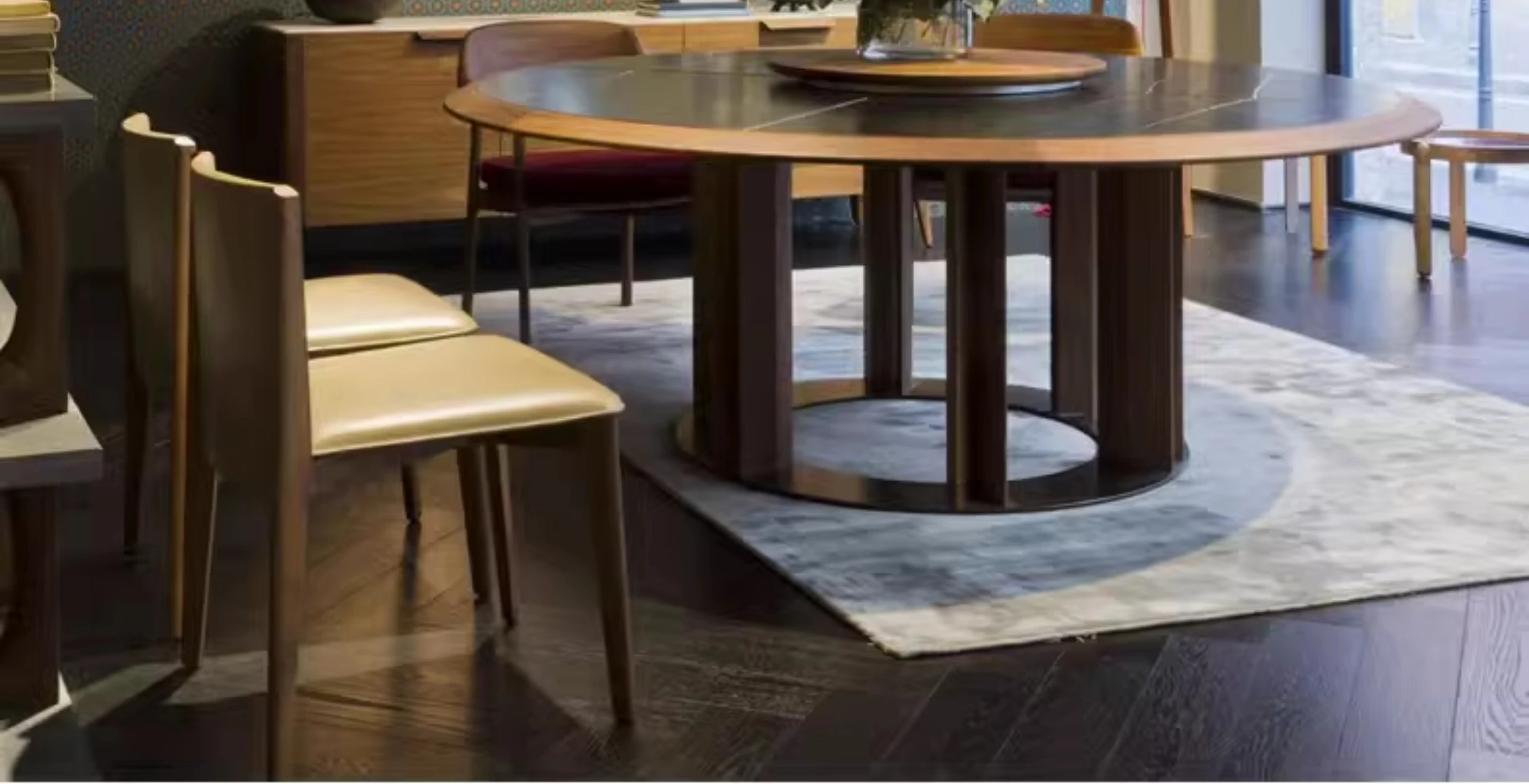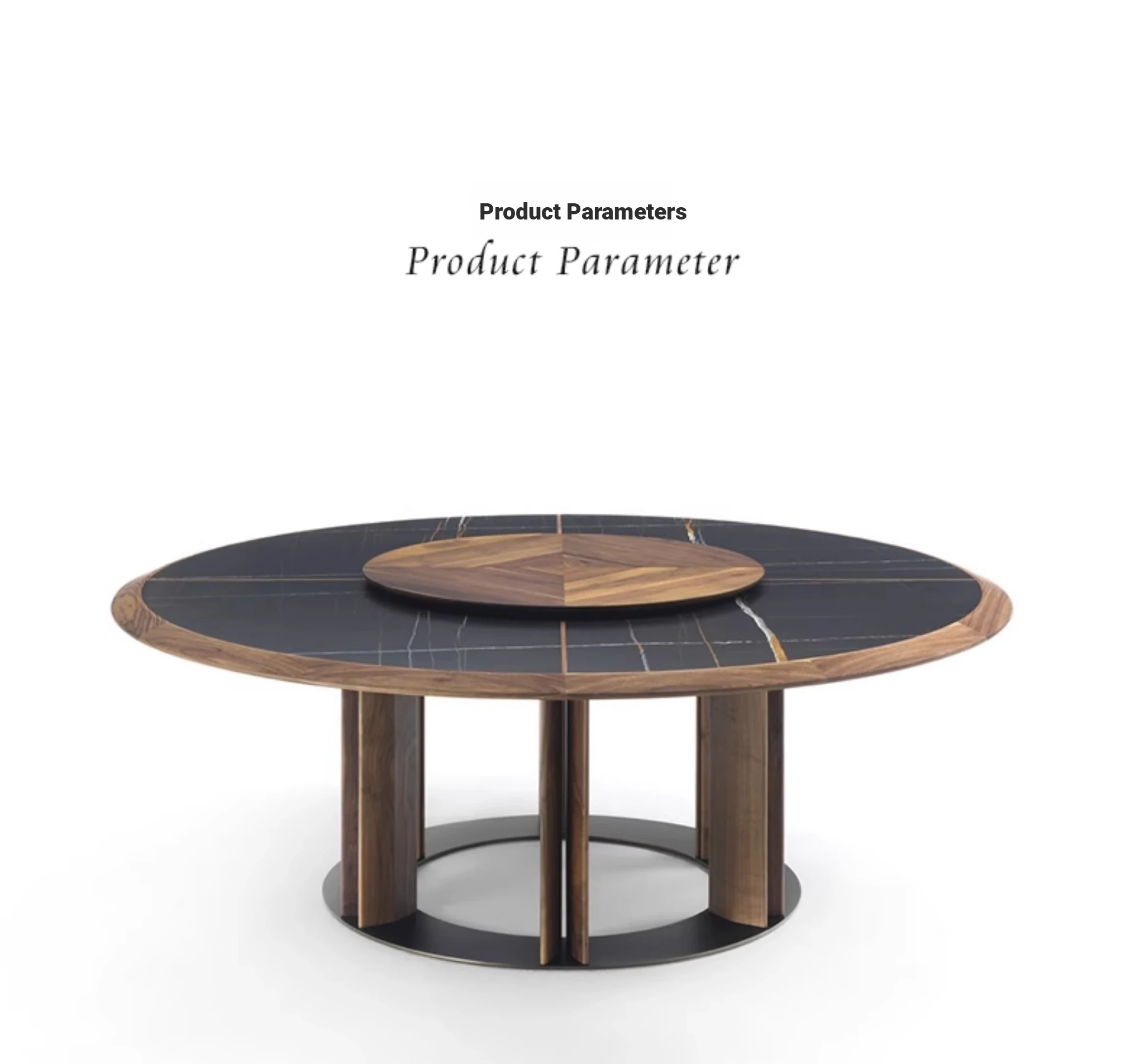 Nordic Black Walnut and Marble Round Dining Table Set with Lazy Susan - Italian Minimalist Style