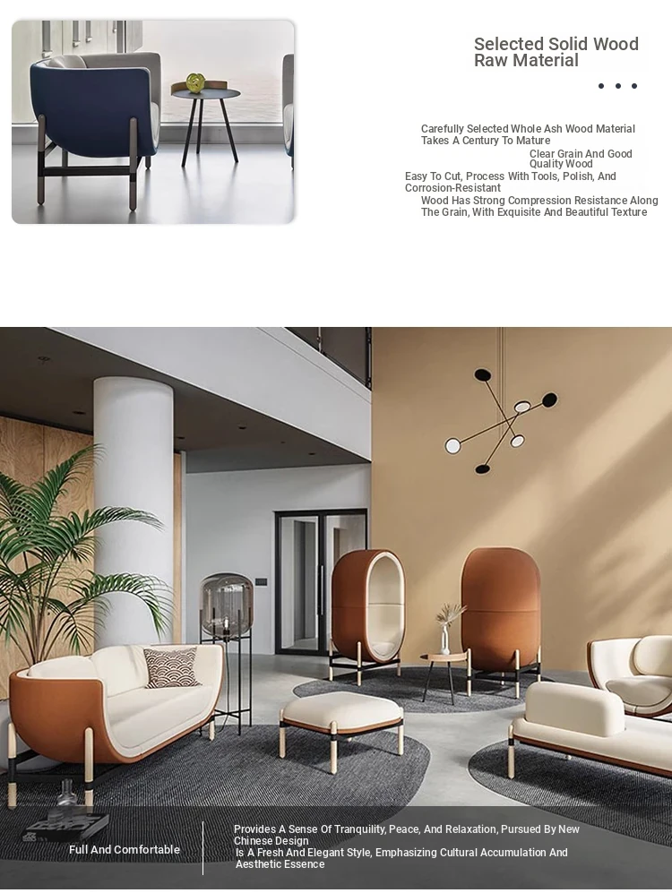 Nordic Modern Minimalist Creative Space Bird Nest Eggshell Solid Wood Fabric Sofa Set for Villa Living Room Furniture