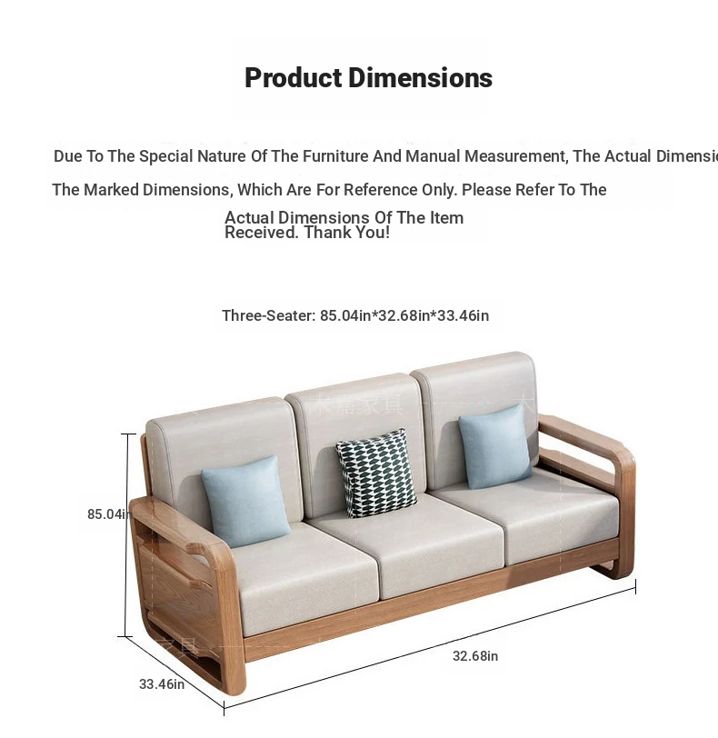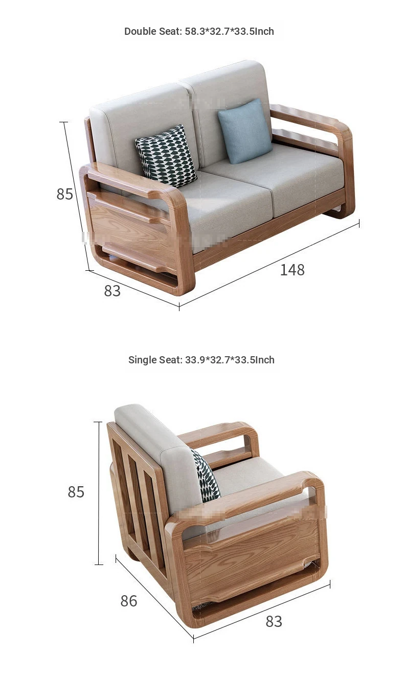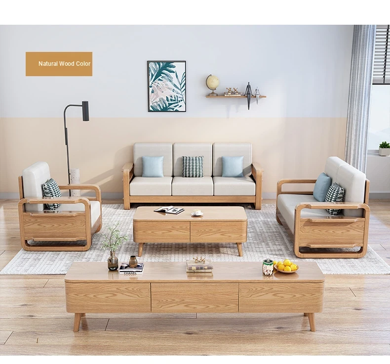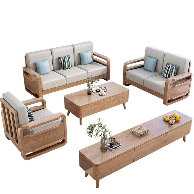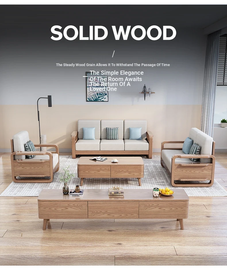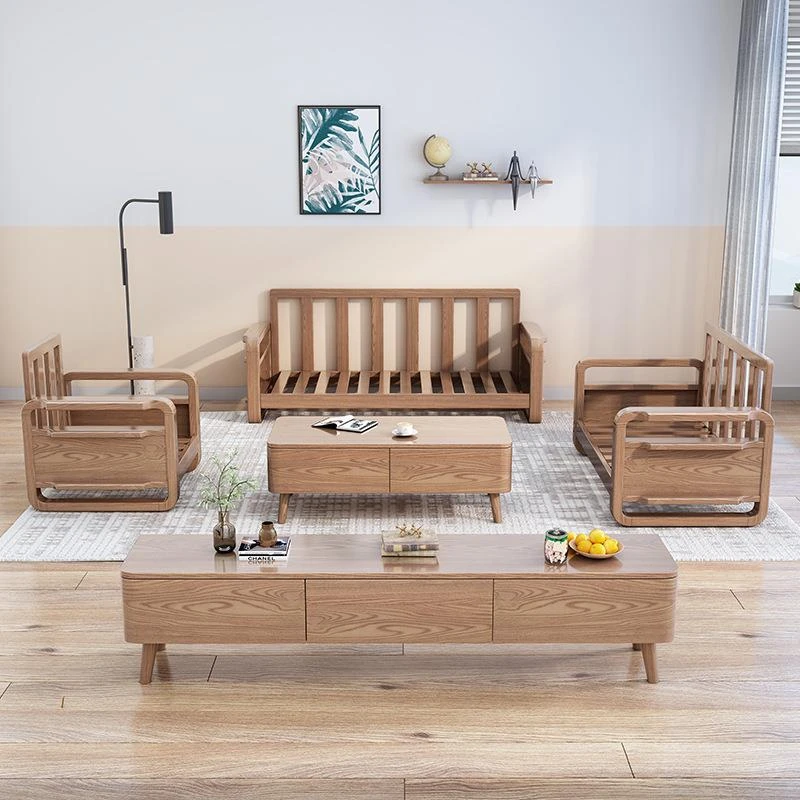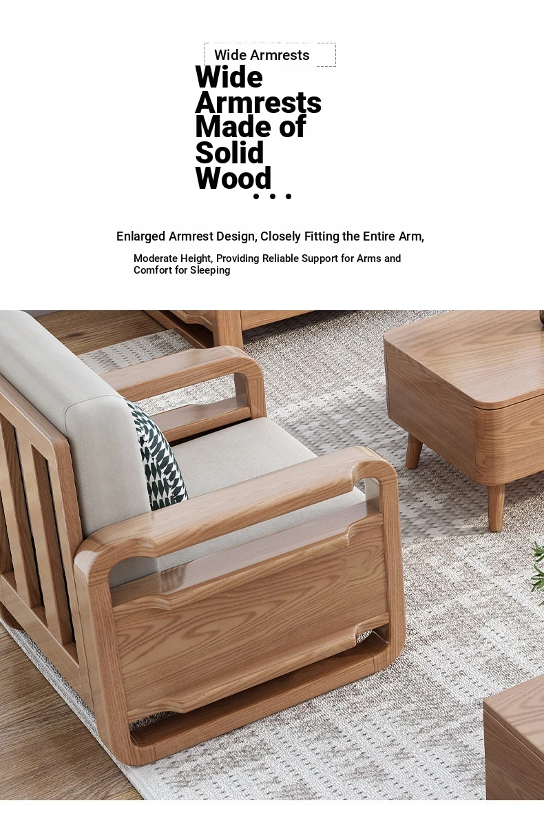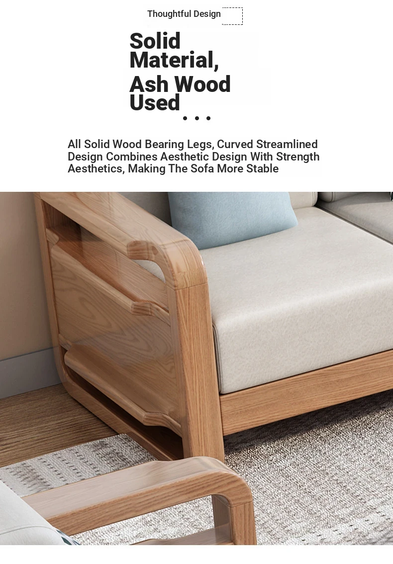 Nordic Solid Ash Wood Sofa Set - Modern Minimalist 123 Combination, Perfect for Small Spaces, Three-Seater Wooden Living Room Furniture