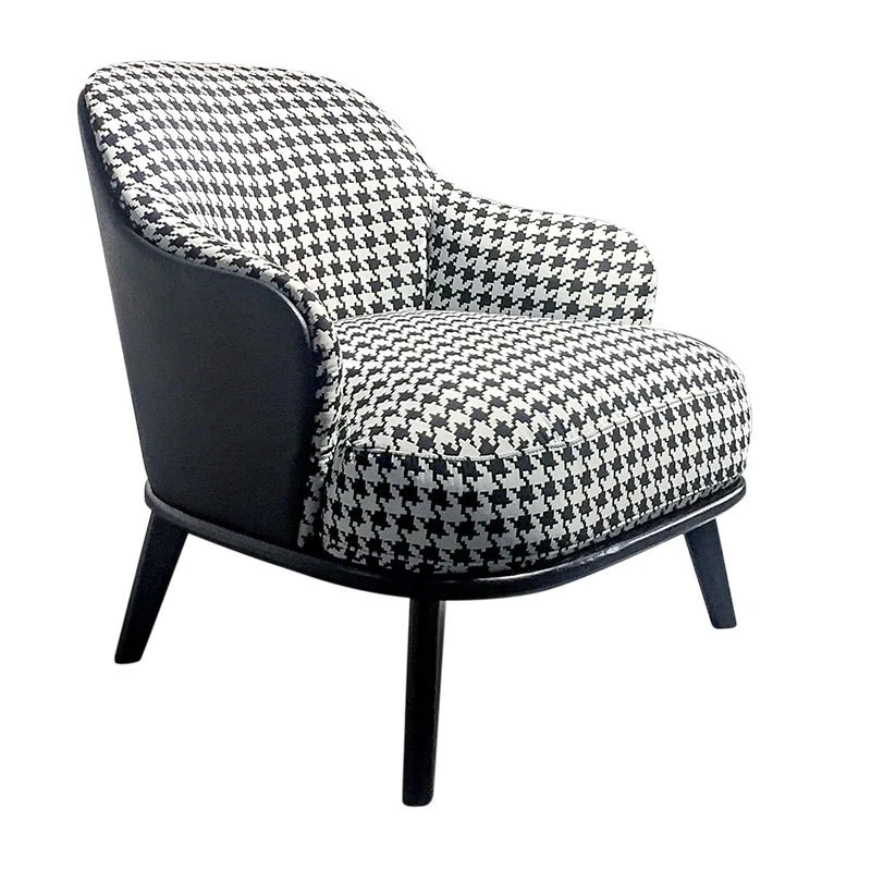 Nordic Style Solid Wood and Fabric Sofa Set - Houndstooth Pattern Single Sofa, Modern Minimalist Design for Small Spaces, Luxurious Yet Affordable Furniture