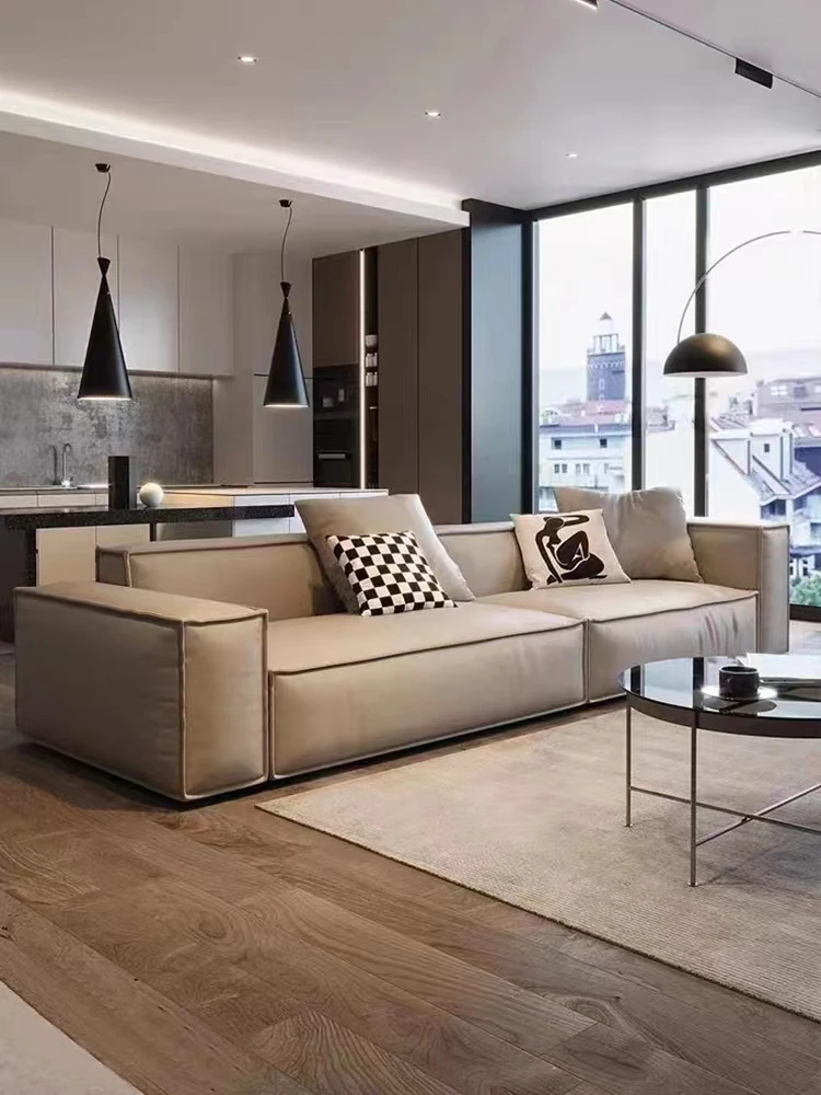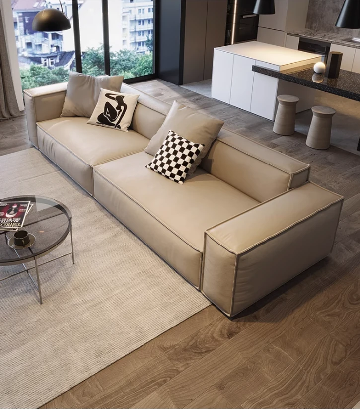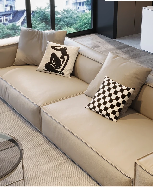 Premium Italian Minimalist Leather Sofa for Small Living Rooms - Luxurious Top-Grain Cowhide, Stylish and Space-Saving Design, Perfect for Modern Homes