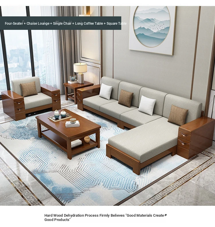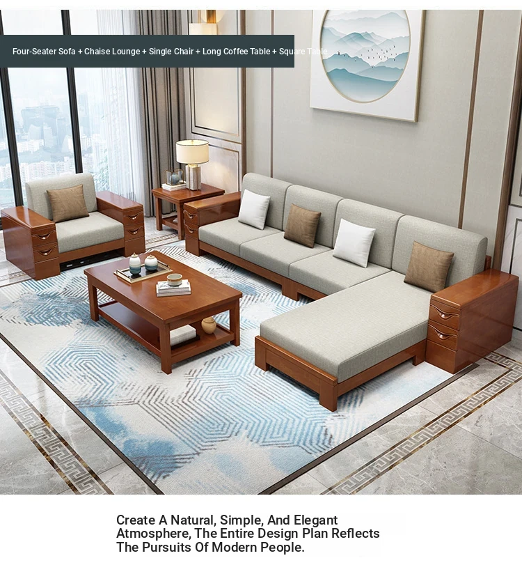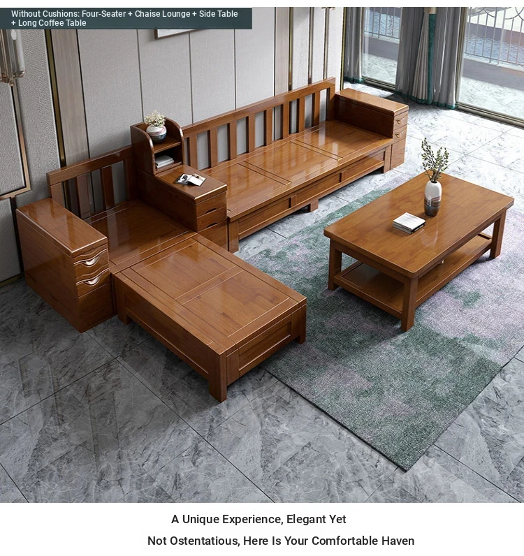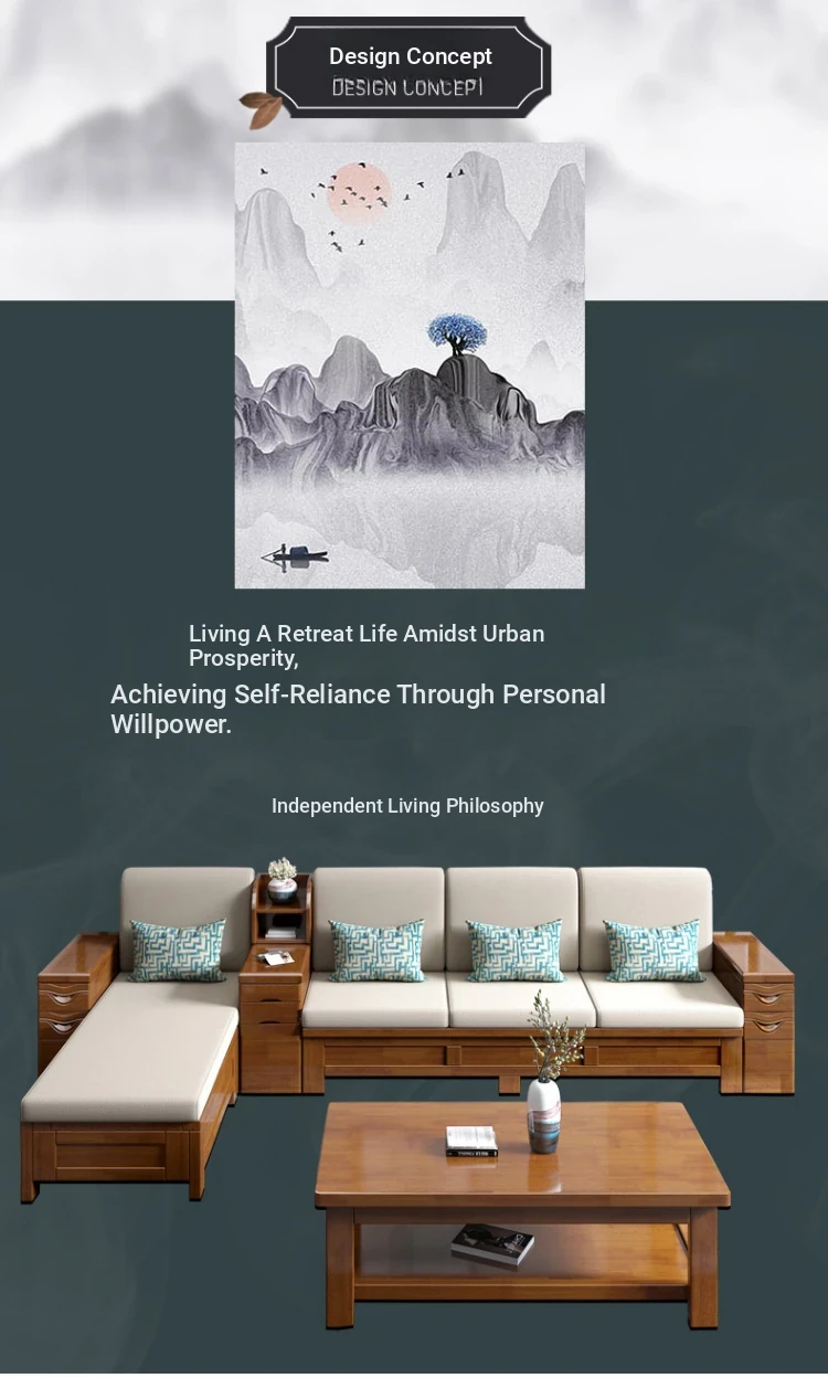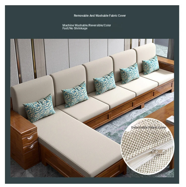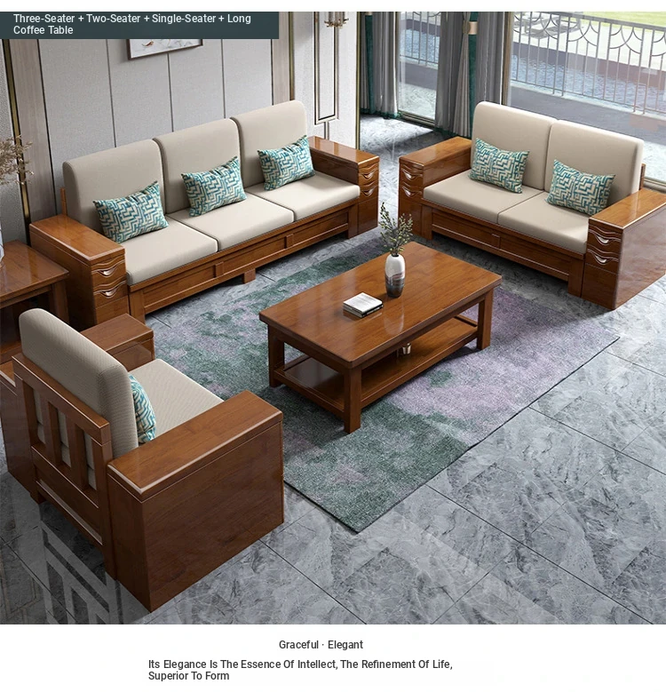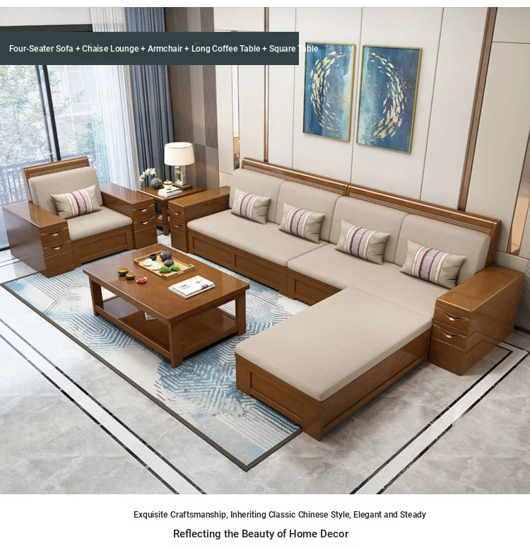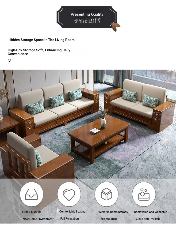 Stylish New Chinese Solid Wood Sofa for Home Living Room – Versatile Design for Small Spaces, Ideal for Winter & Summer Use, Perfect for Hotels and Guesthouses with High-Storage Features