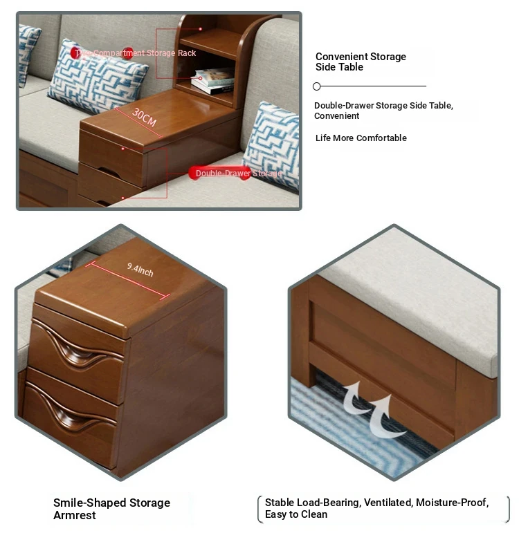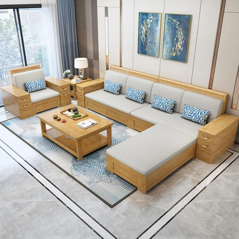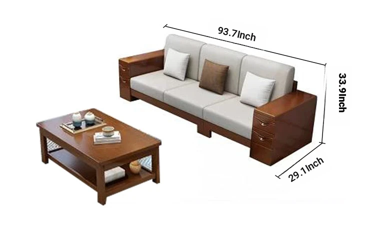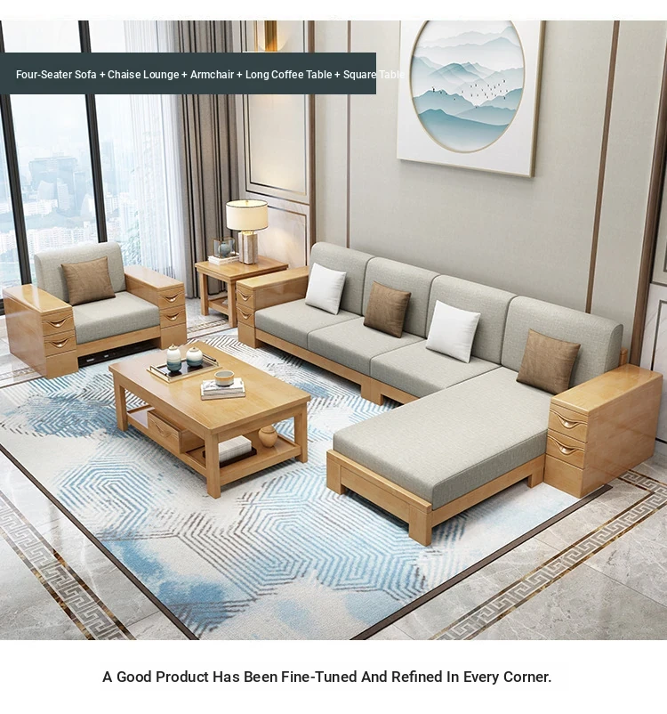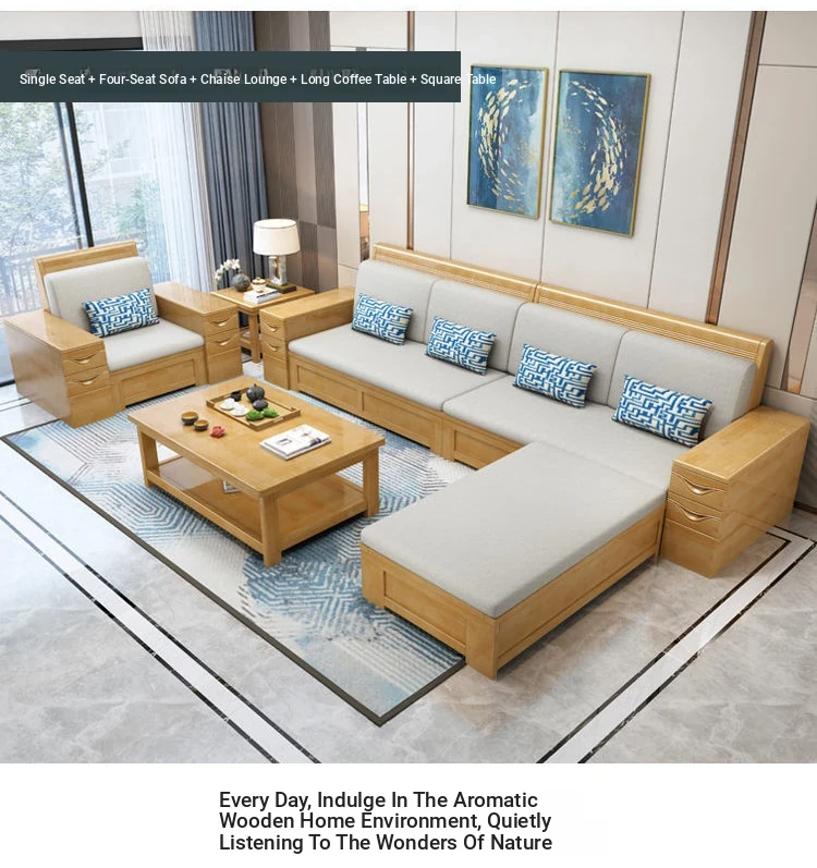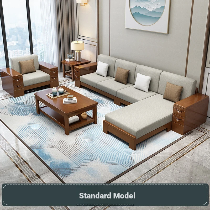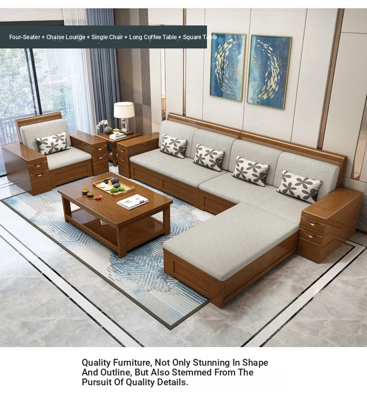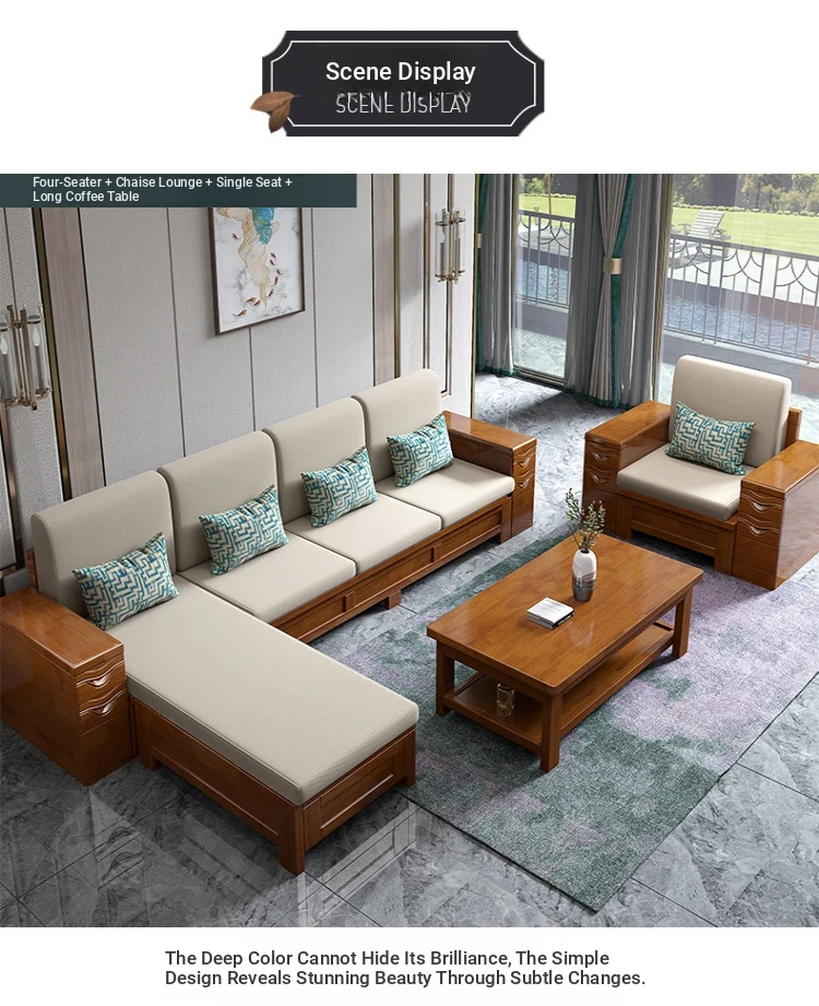 Stylish New Chinese Solid Wood Sofa for Home Living Room – Versatile Design for Small Spaces, Ideal for Winter & Summer Use, Perfect for Hotels and Guesthouses with High-Storage Features