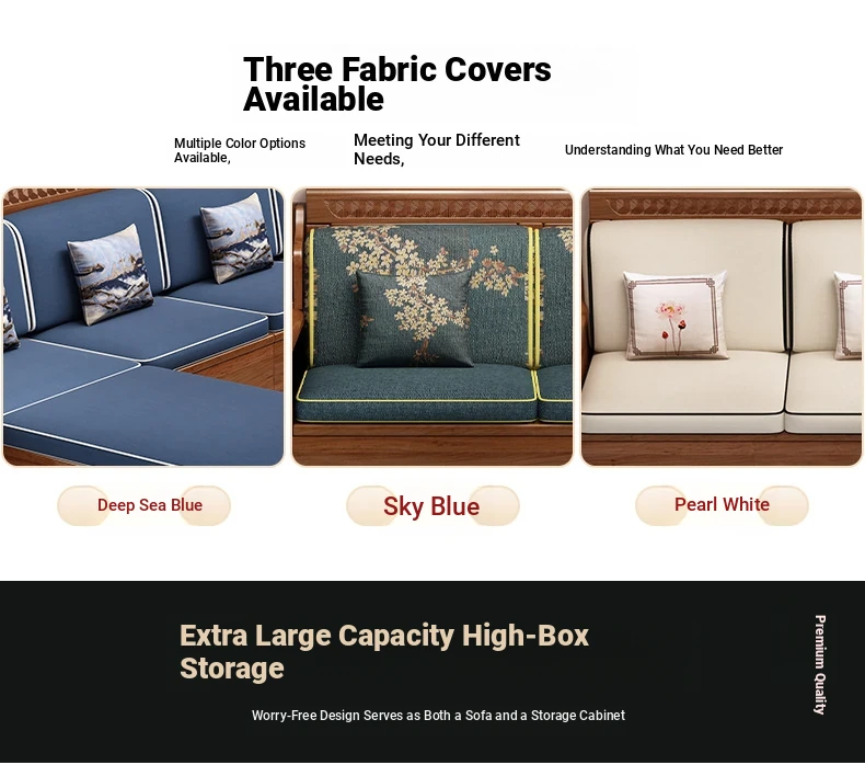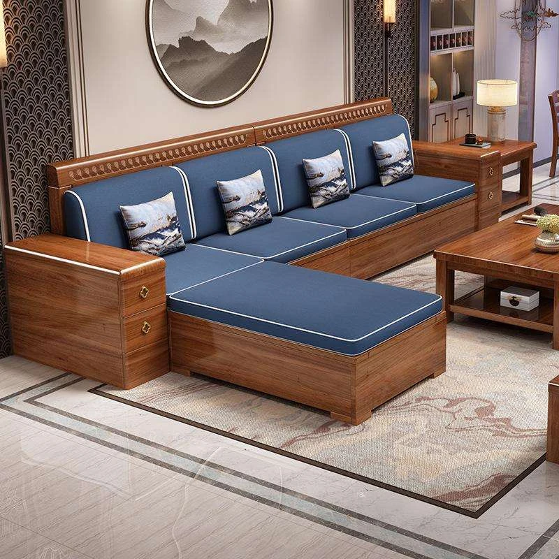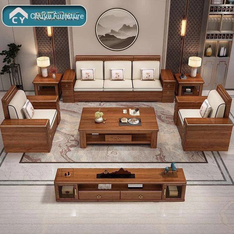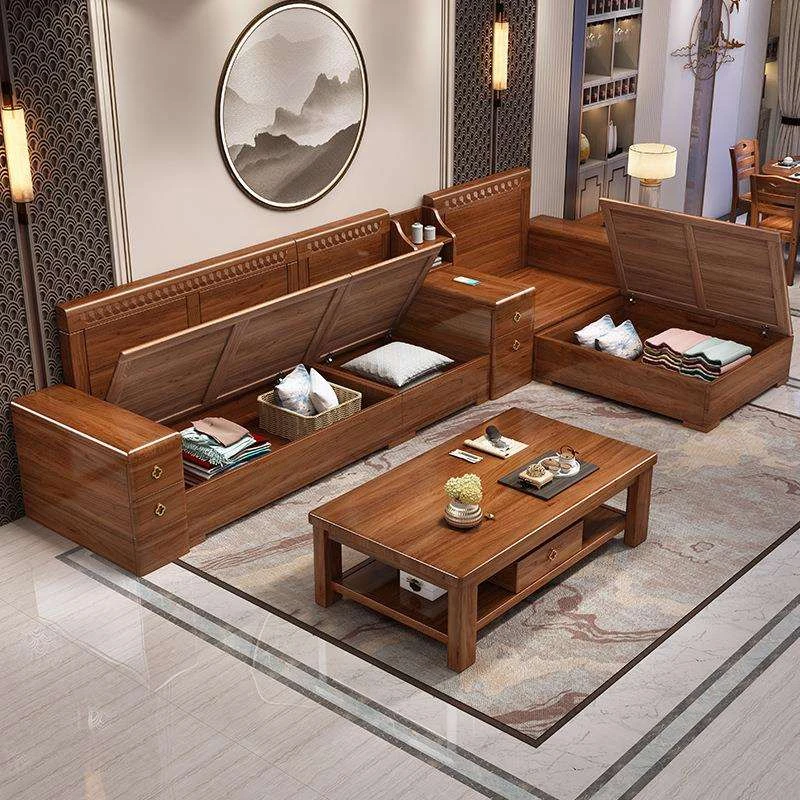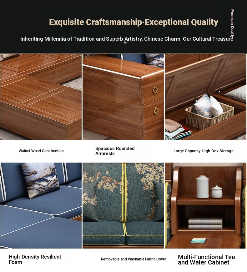 Walnut Solid Wood Sofa Set - Versatile for All Seasons, Perfect for Any Living Room Size with High Storage Box - Elegant Chinese Style Furniture