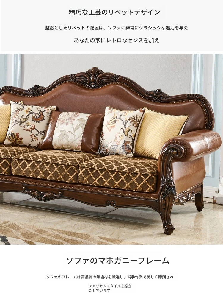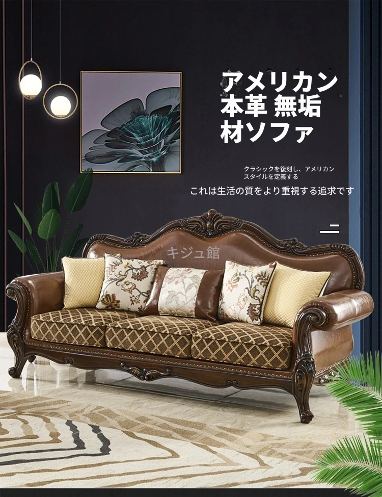 アメリカンスタイル本革ソファ・トップグレード牛革使用!レトロなデザインで、広々としたリビングにぴったりな123コンビネーションソファ。高級感溢れる大容量家具で、快適なひとときをお楽しみください。