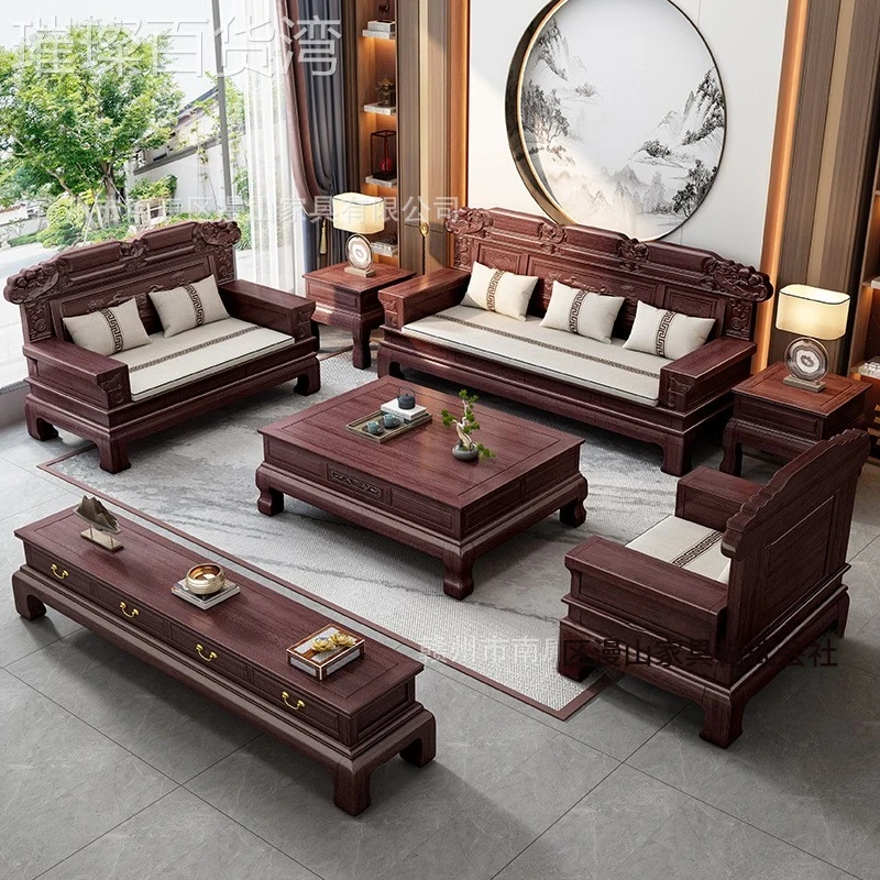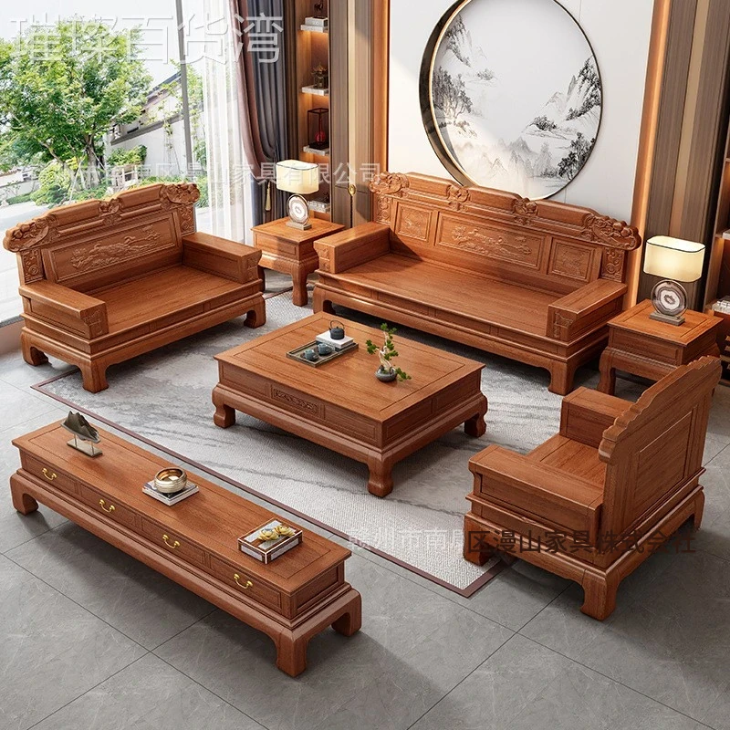 豪華な伝統的中式彫刻が施されたアンティーク風の花梨木製家具TS-0608#、冬夏兼用の高級別荘向け、実木使用で耐久性抜群!おしゃれな空間を演出します。