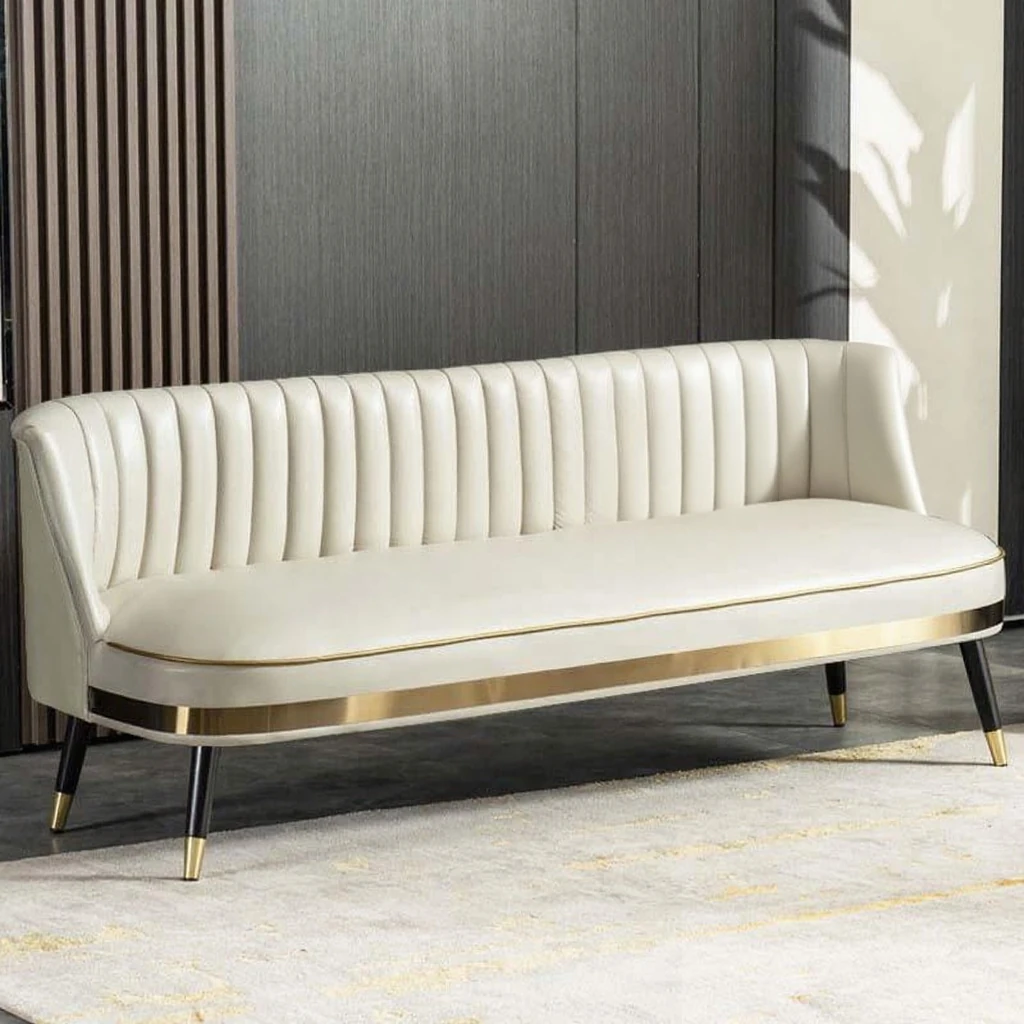 リッチな雰囲気を演出するアームレストなしの軽奢ソファ!猫の爪にも強いレザー製、コンパクトな小型リビングや美容院の受付に最適。2人掛け・3人掛けの選べるサイズで、心地よい空間を演出します。