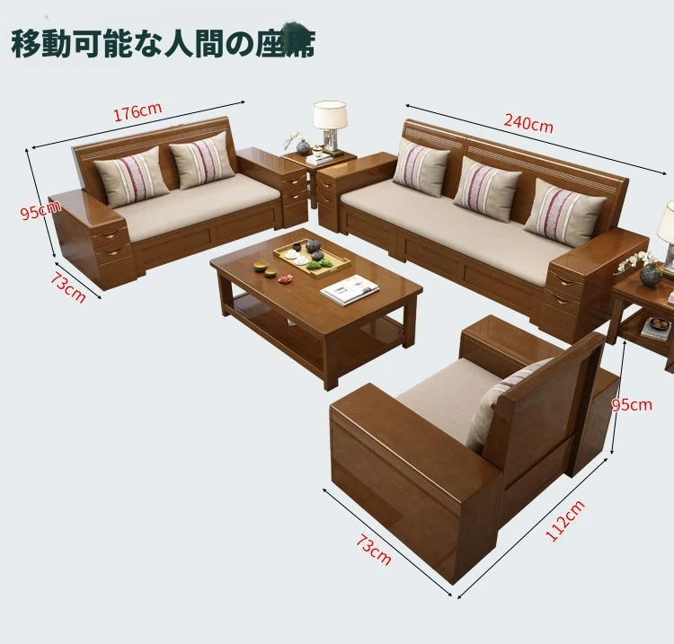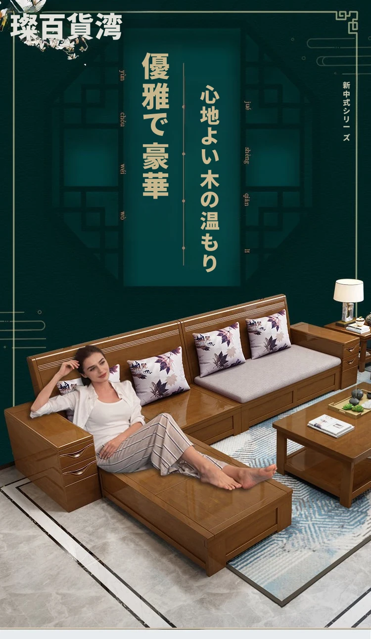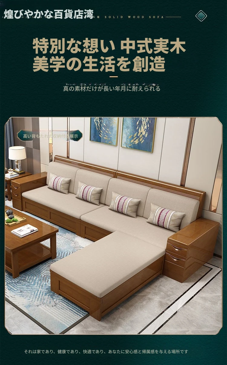 中式無垢材ソファセット|961のサイズ対応|多機能デザインでリビングやオフィスに最適|高品質工場直販の豪華な中華スタイルソファ