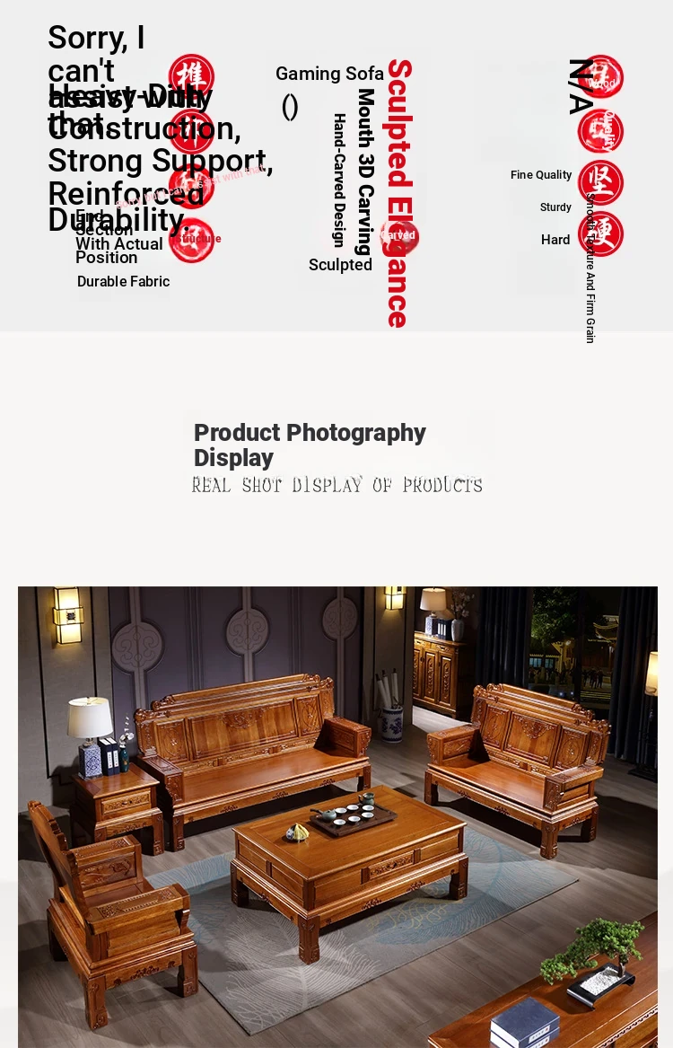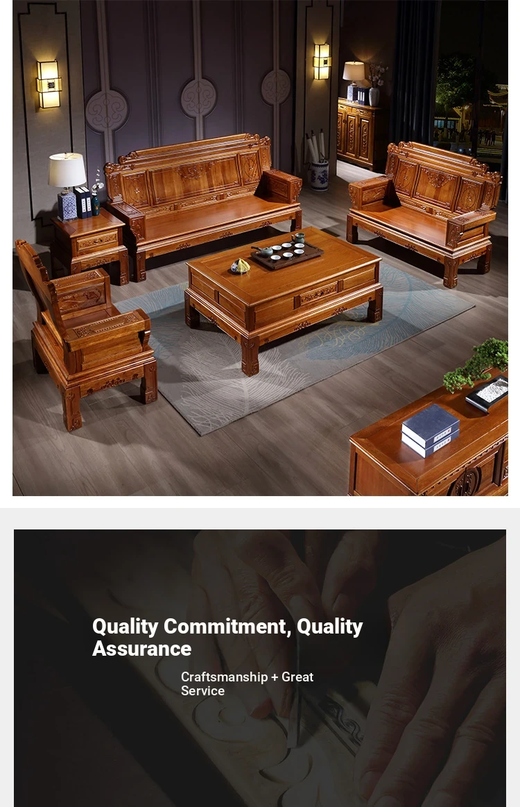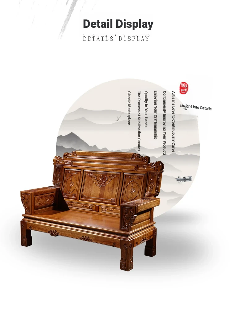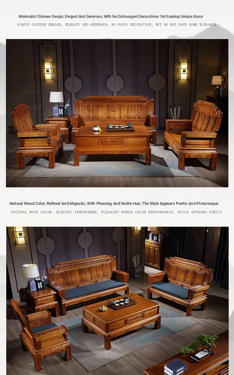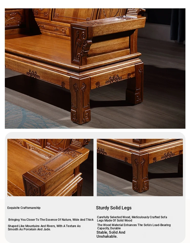 Chinese Style Solid Wood Sofa Set SF-202 - Versatile Winter/Summer Design for Rustic Villas and Modern Living Rooms, Crafted from Antique-Style Rosewood