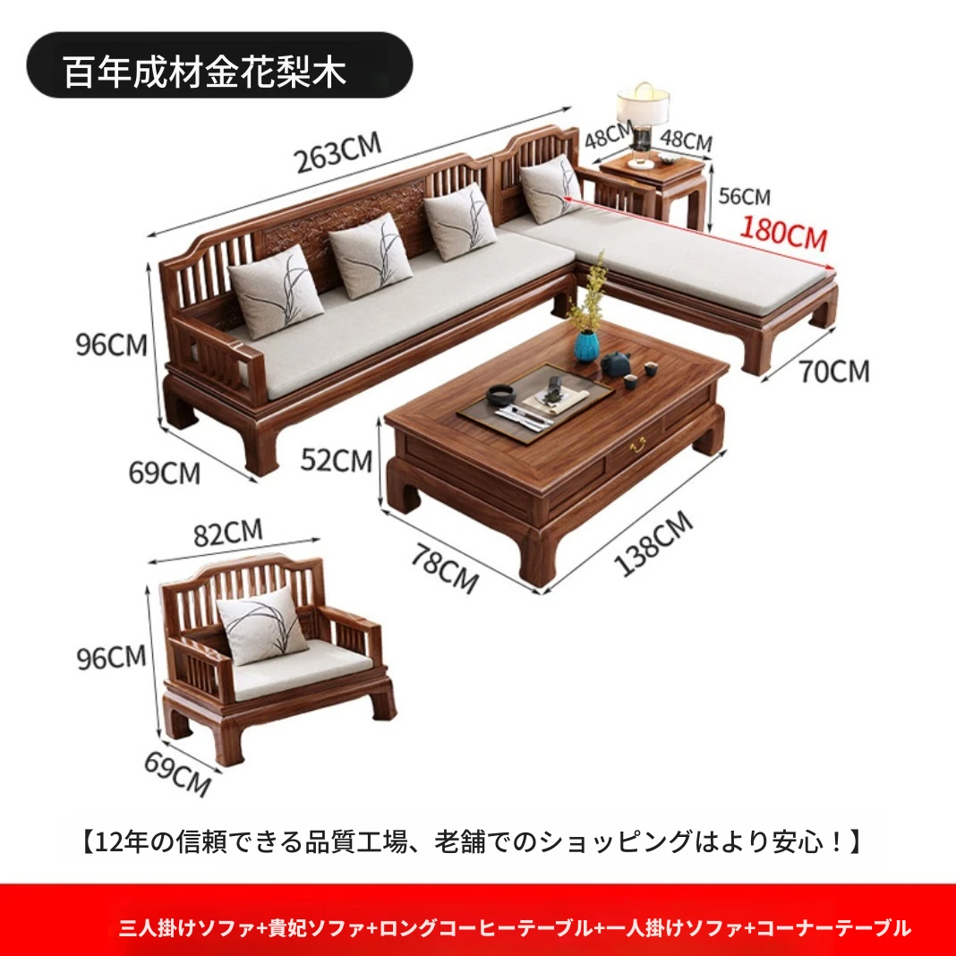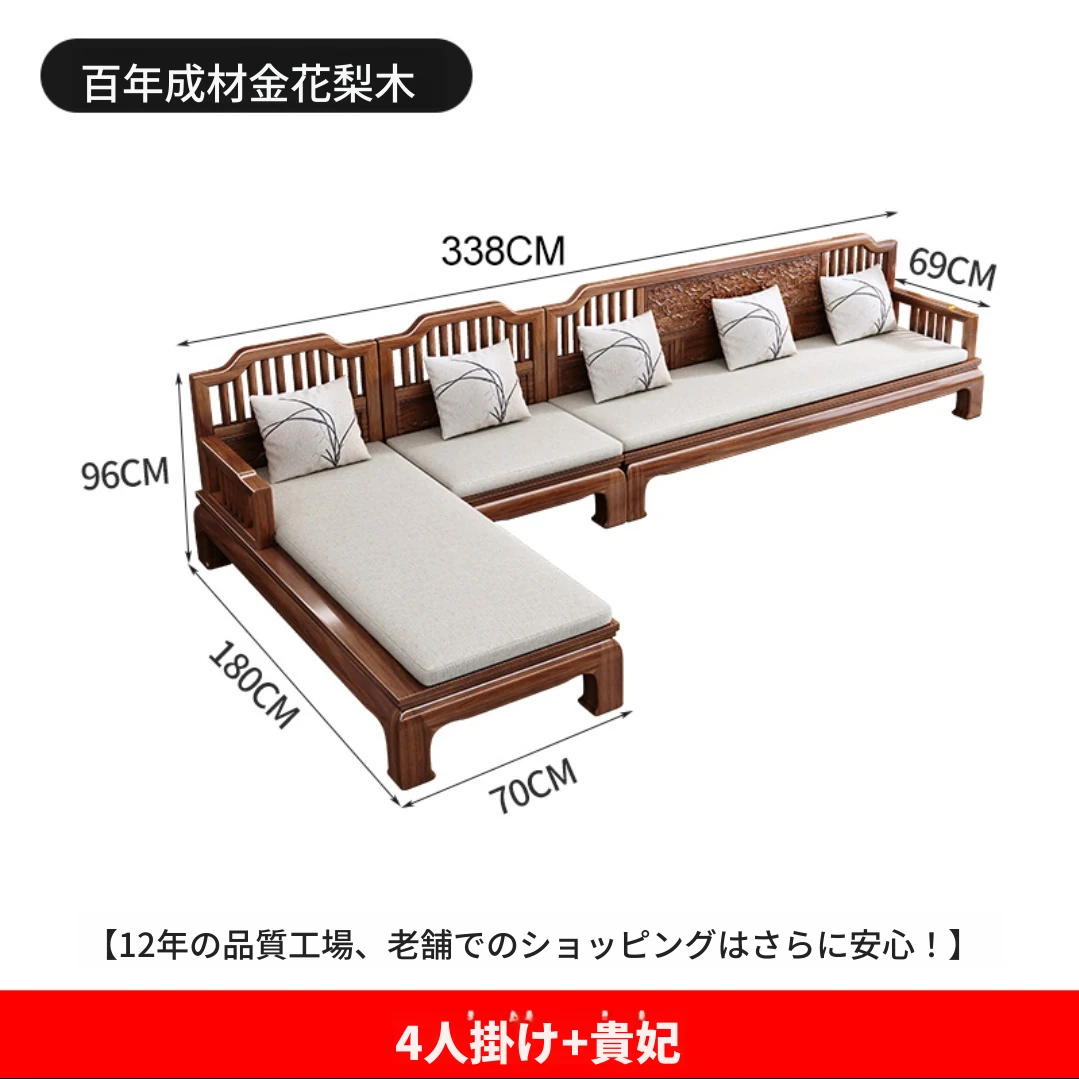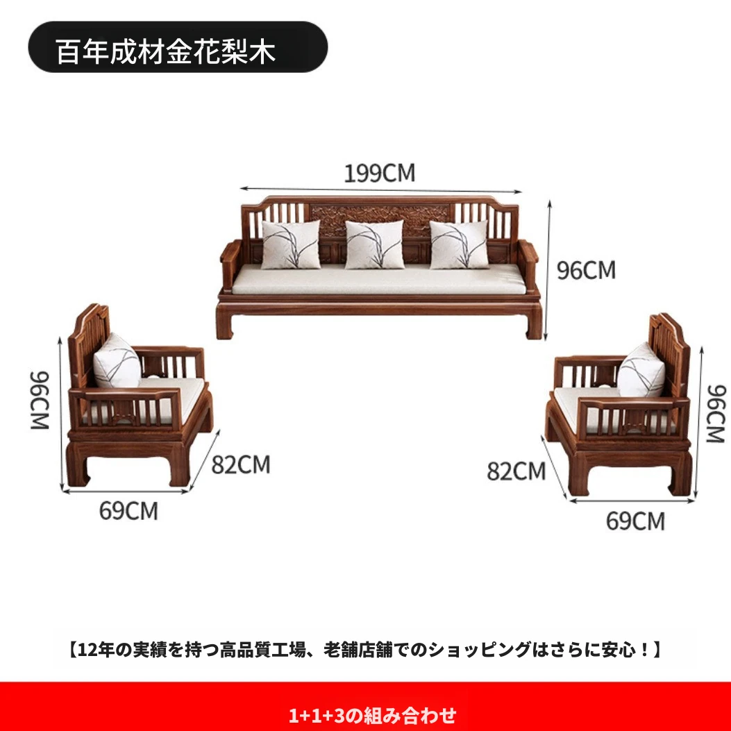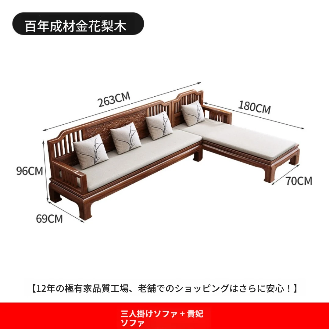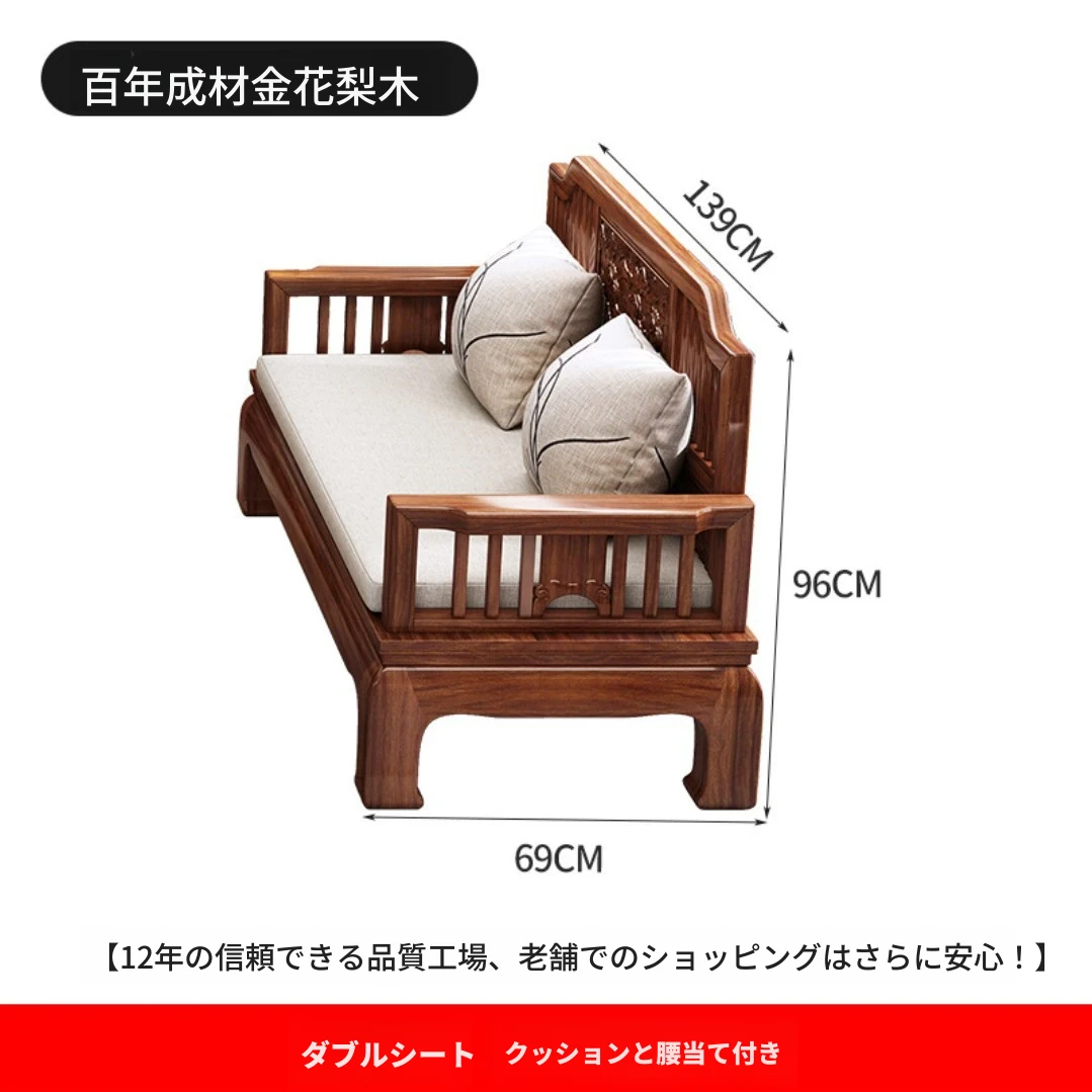 中式アンティーク風金華梨木製 冬夏兼用の実木ソファ・貴妃ベッドセット 彫刻デザインの小型リビング家具