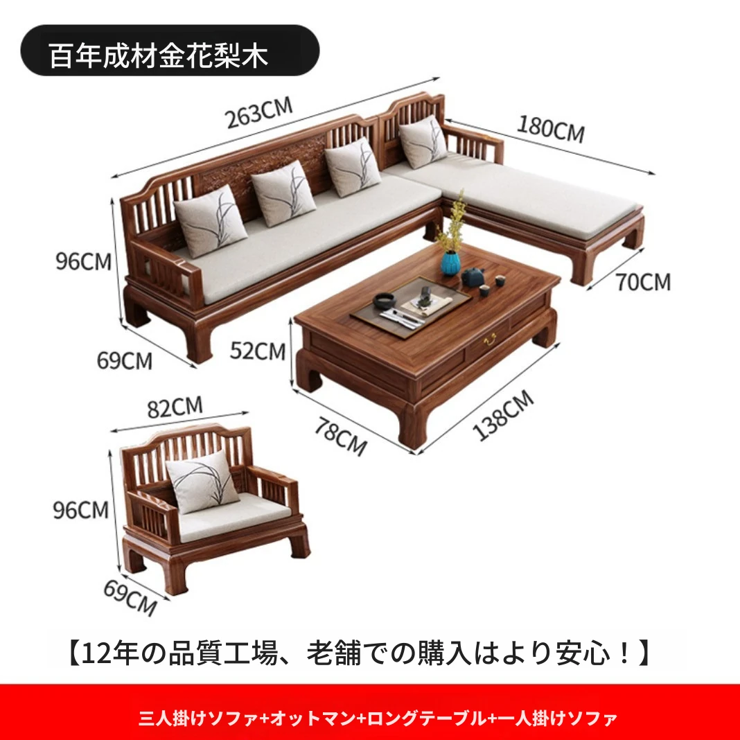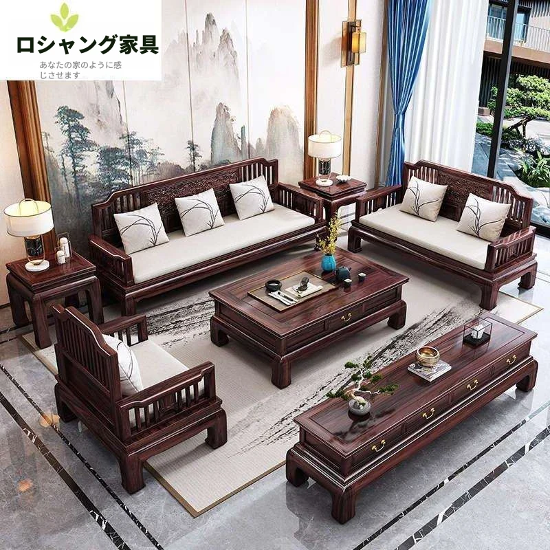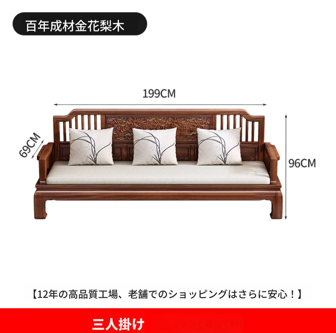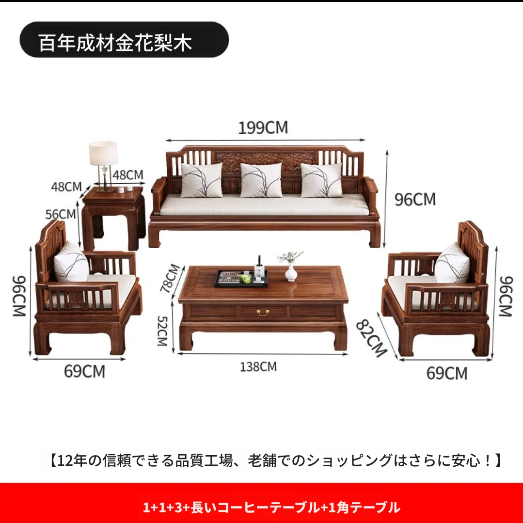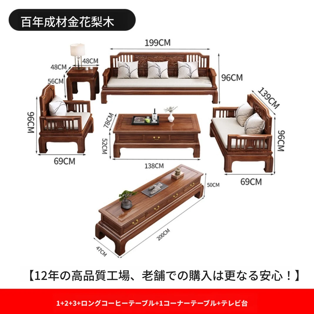 中式アンティーク風金華梨木製 冬夏兼用の実木ソファ・貴妃ベッドセット 彫刻デザインの小型リビング家具