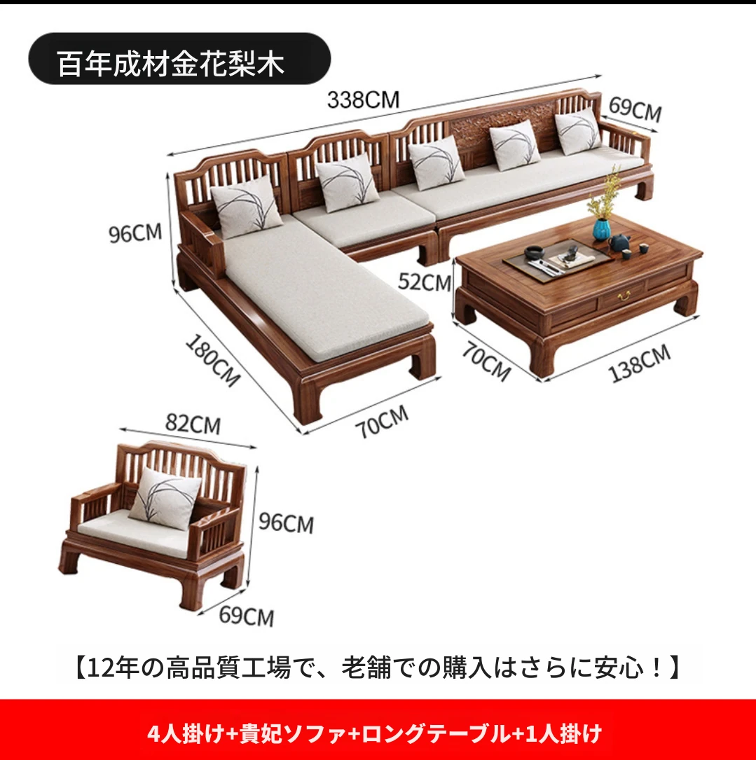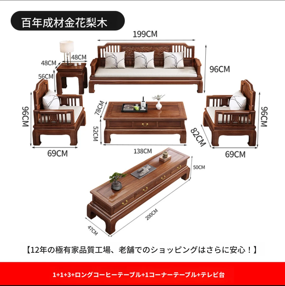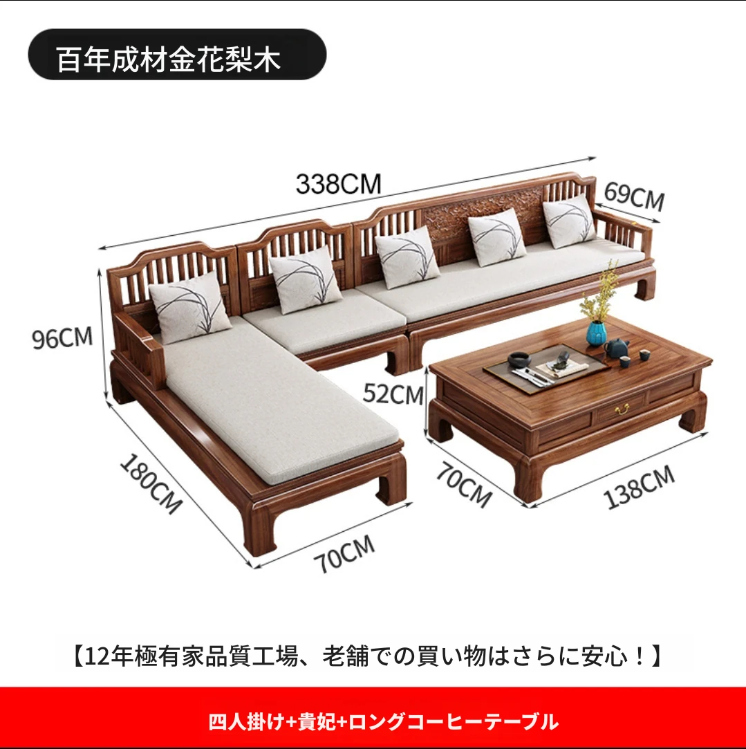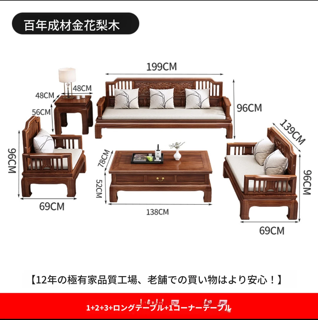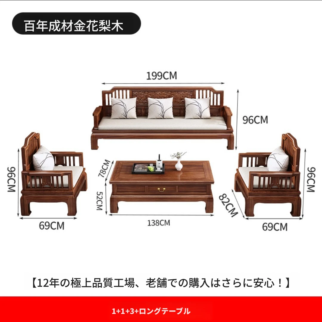 中式アンティーク風金華梨木製 冬夏兼用の実木ソファ・貴妃ベッドセット 彫刻デザインの小型リビング家具