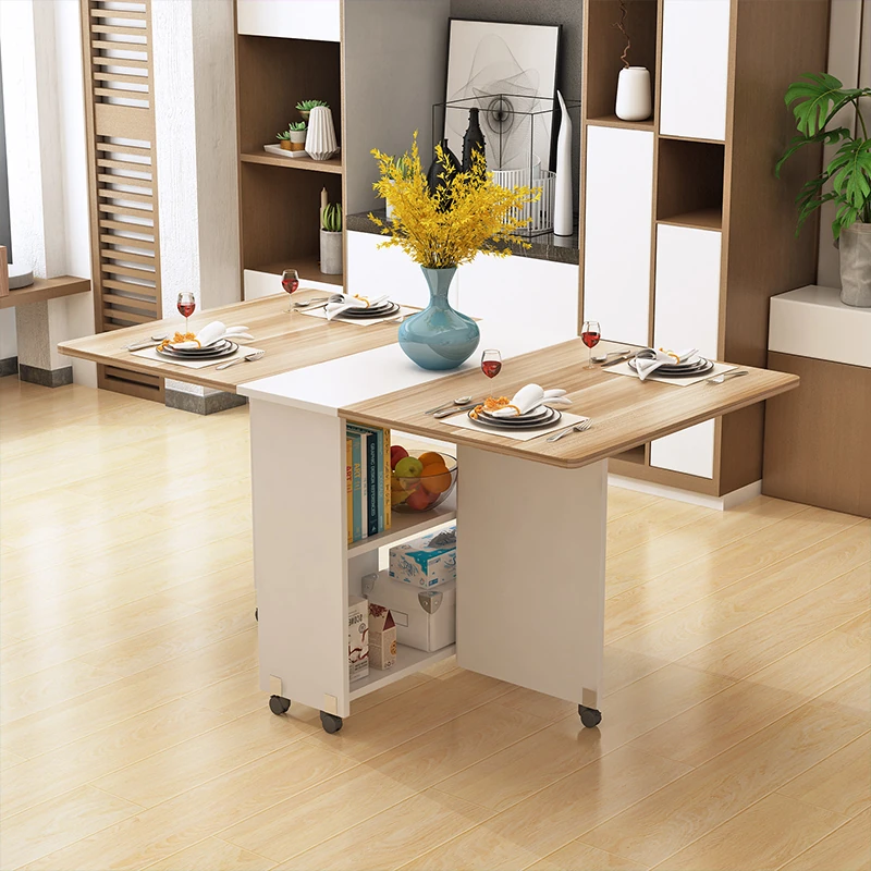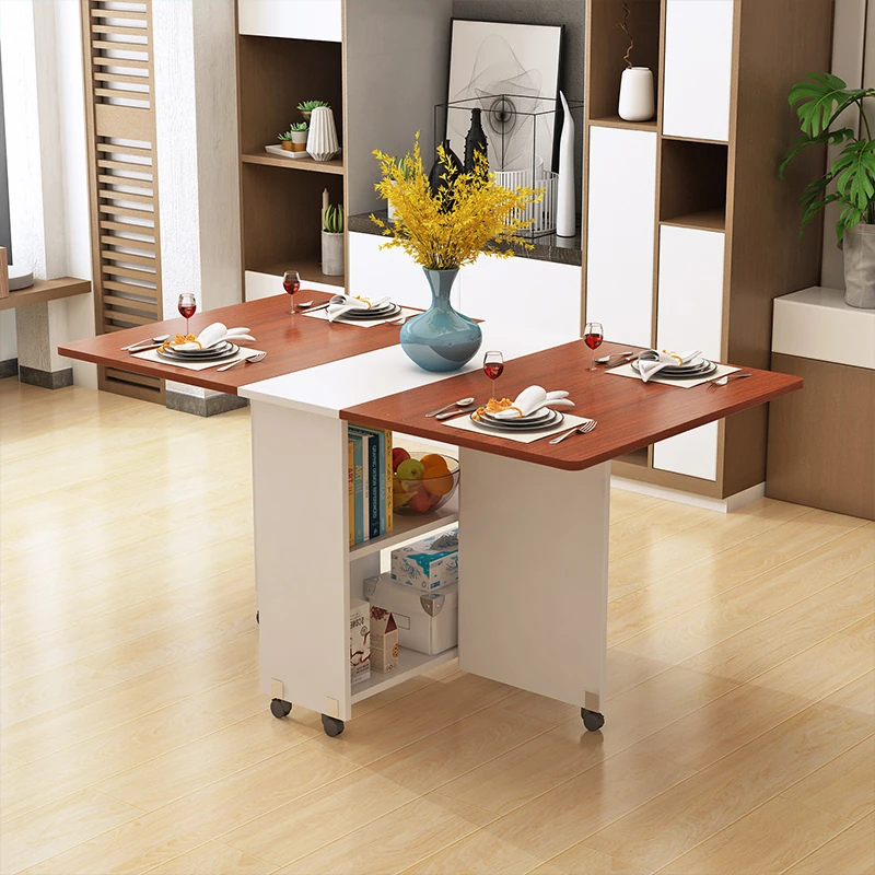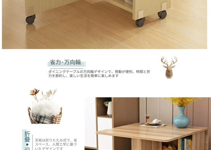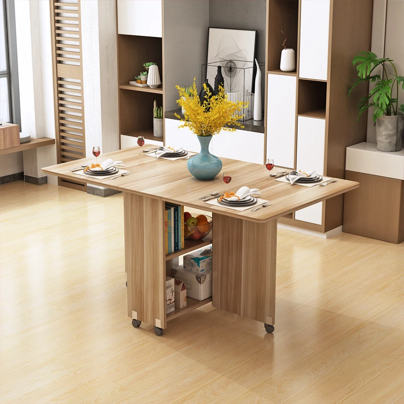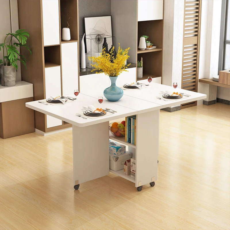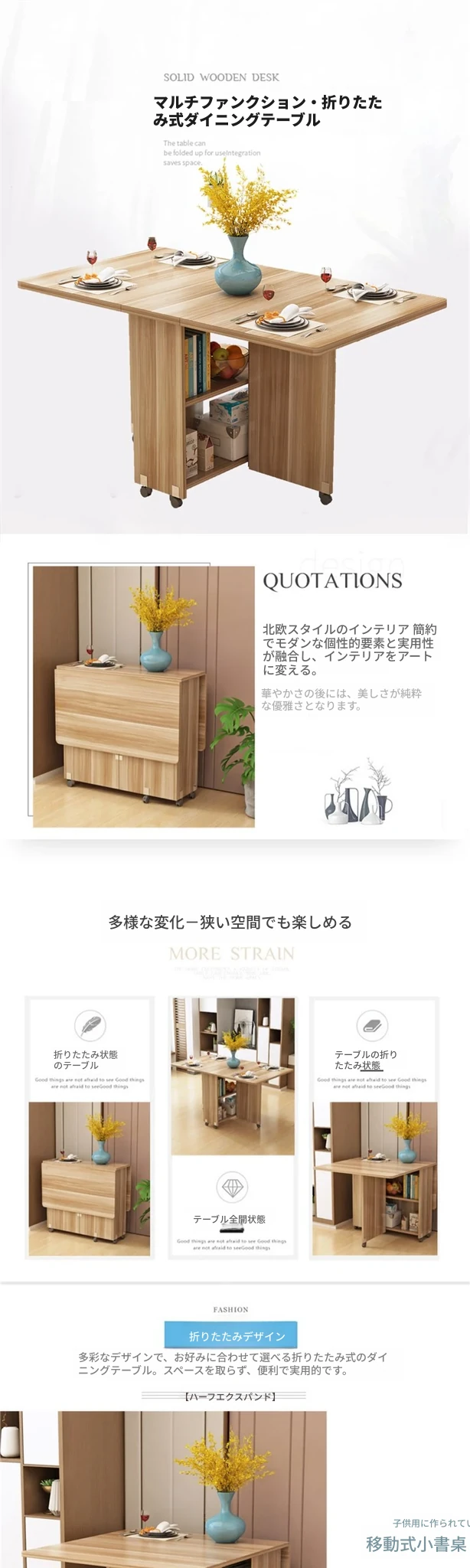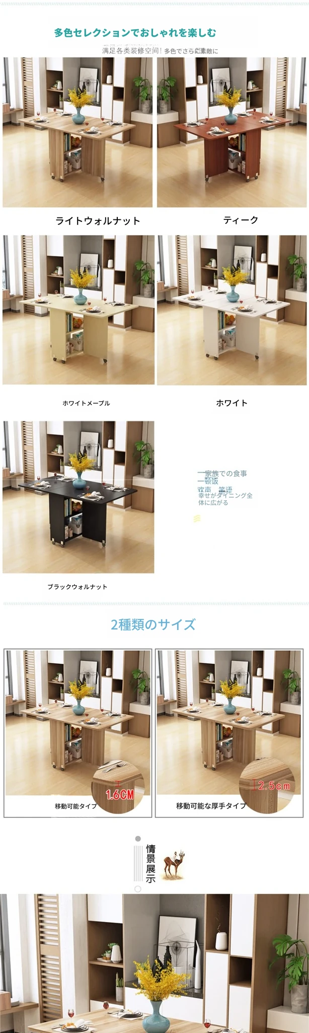 簡易丸型折りたたみダイニングテーブル|小スペースに最適!移動可能なキャスター付き、シンプルで多機能な長方形テーブルで、家族や友人との食事をもっと楽しく!