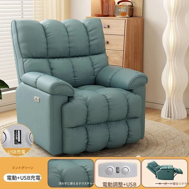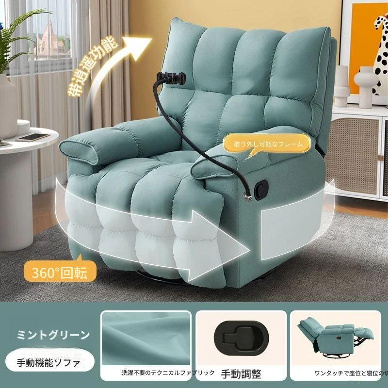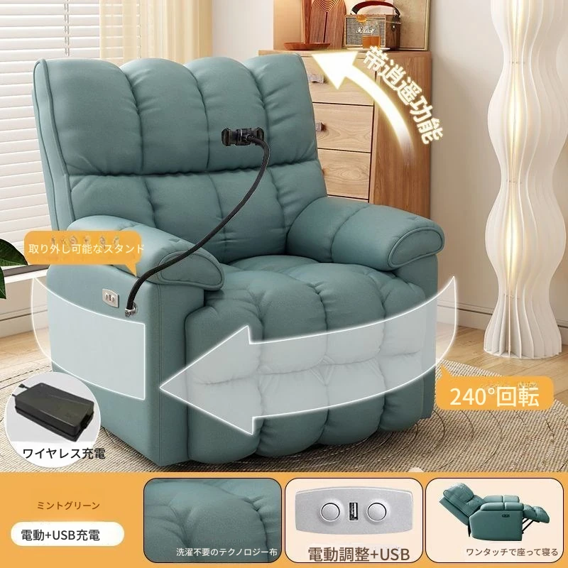 【テクノロジー布】ミントグリーン(ラテックスタイプ))_型番(電動リクライニング回転無線充電スマホスタンド+USB)