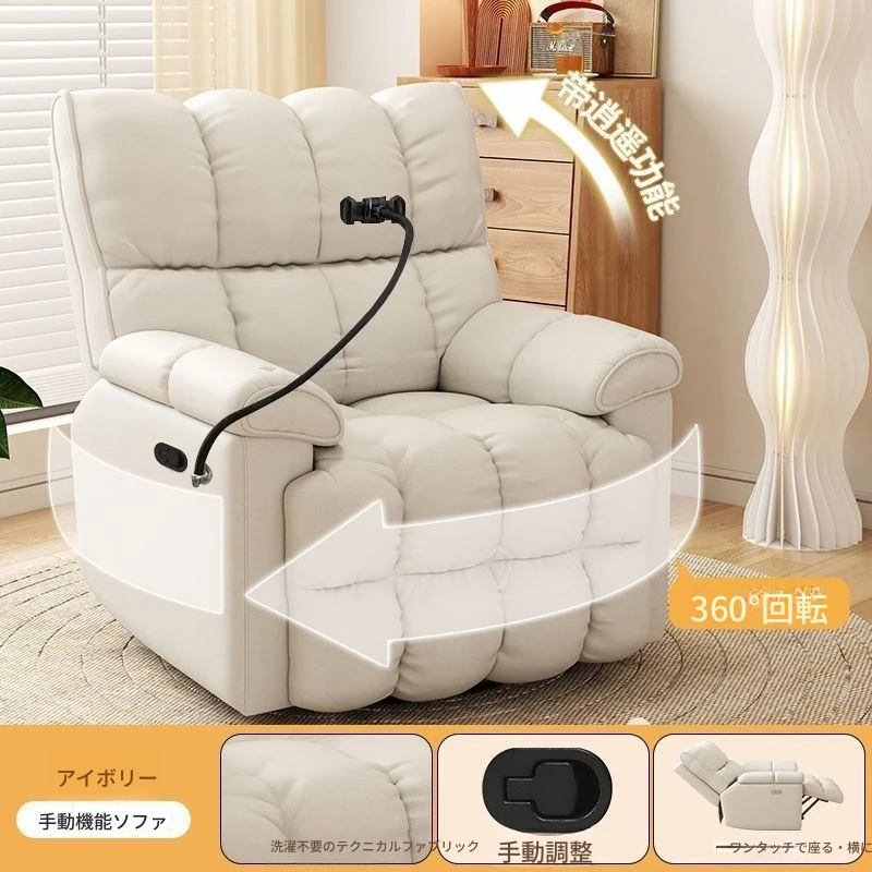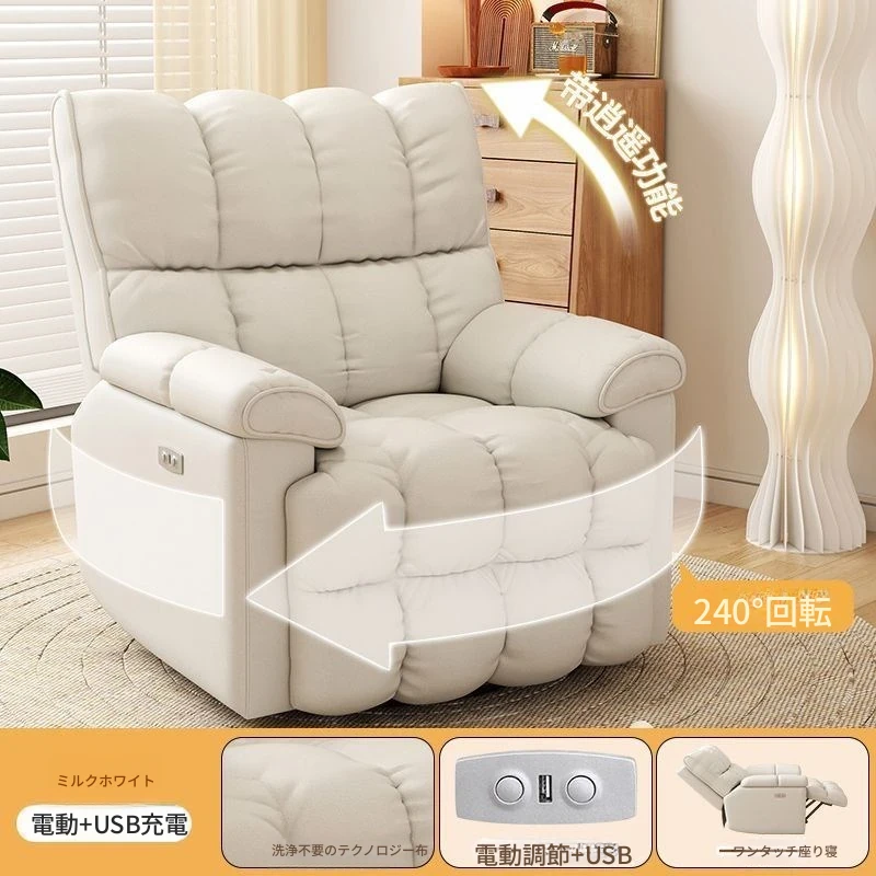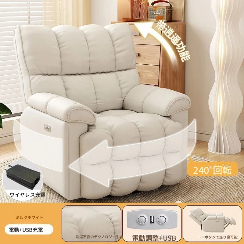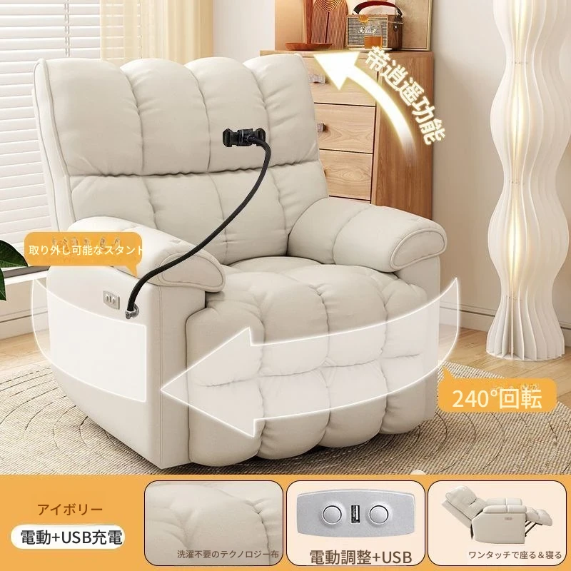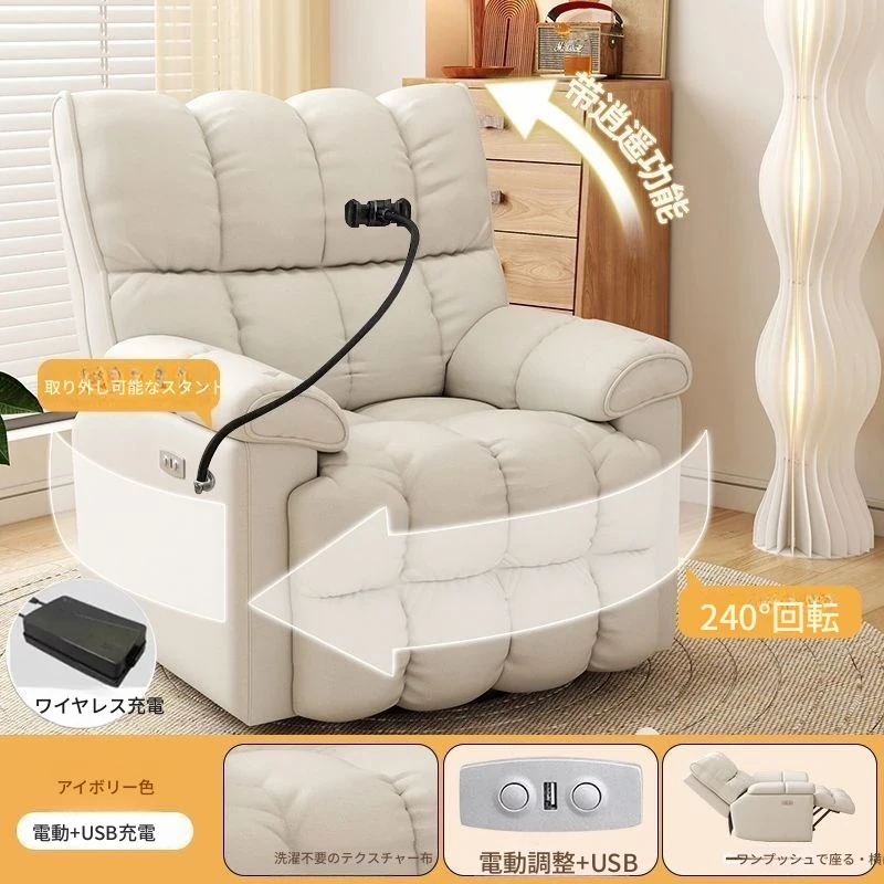 【テクノロジー布】アイボリー(ラテックスタイプ))_モデル(電動リクライニング回転無線充電スマホスタンド+USB)