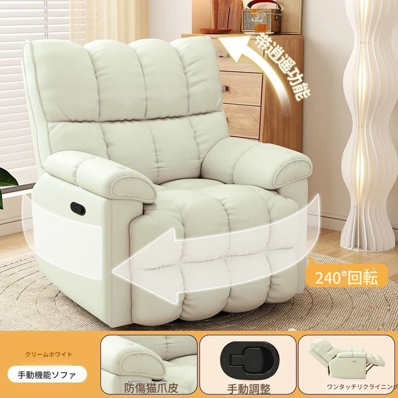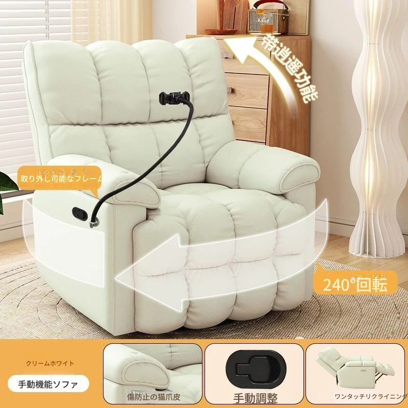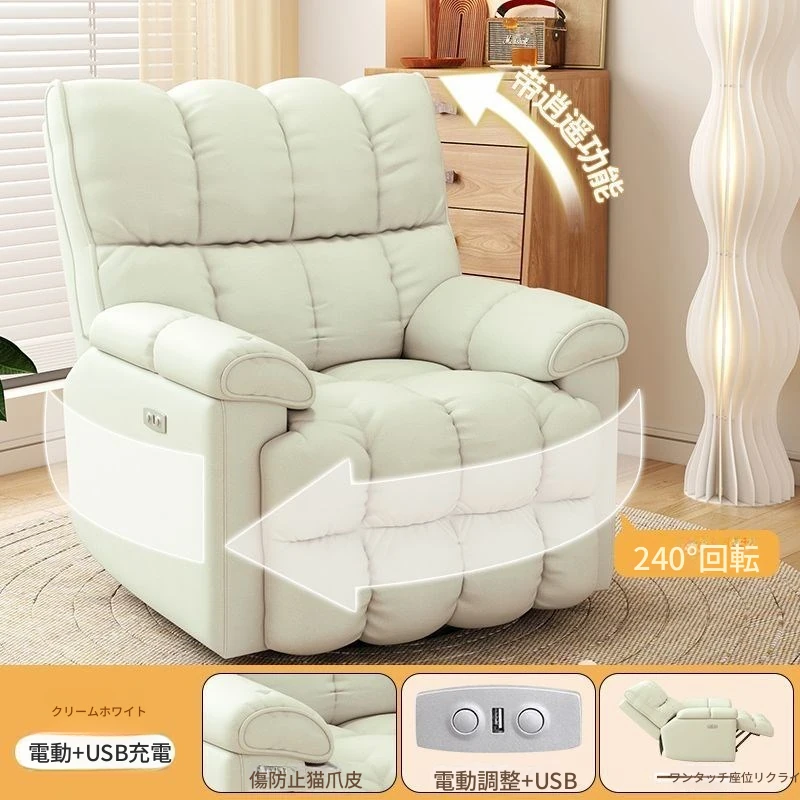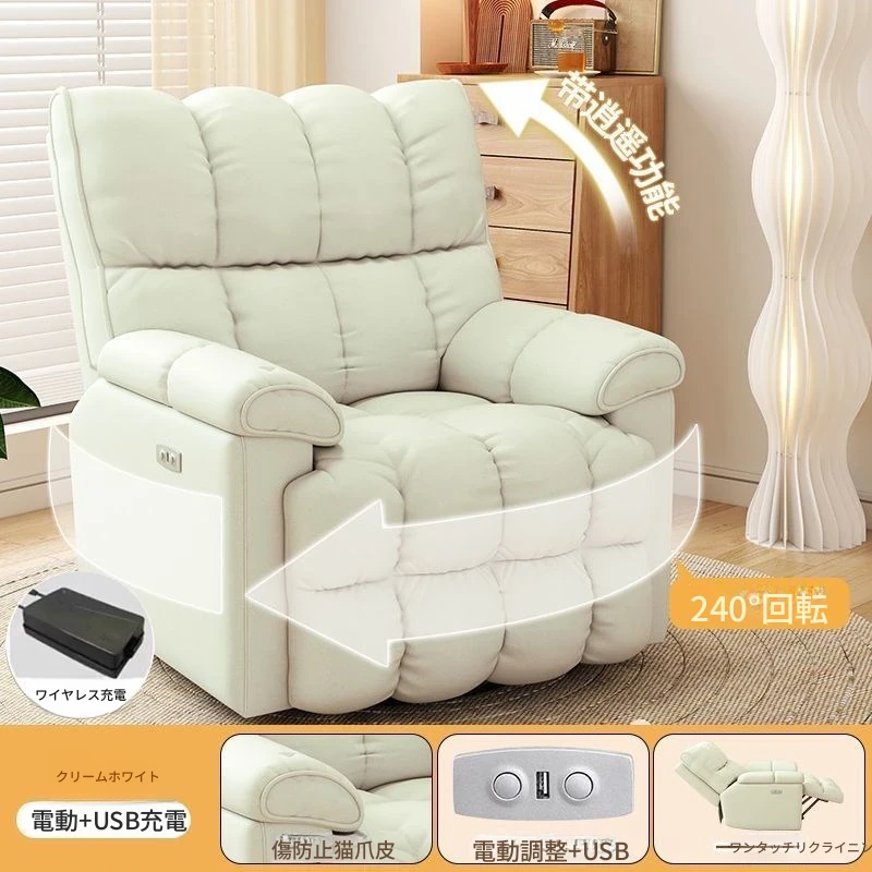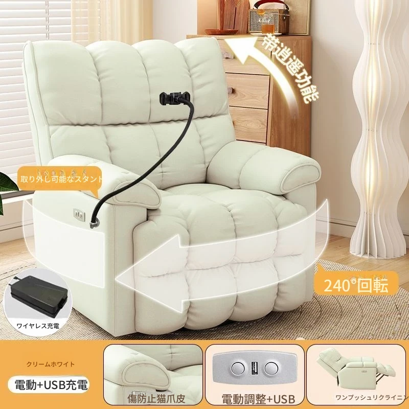 【猫抓皮】クリームホワイト(ラテックスタイプ))_型番(電動リクライニング+回転+ワイヤレス充電+USB)