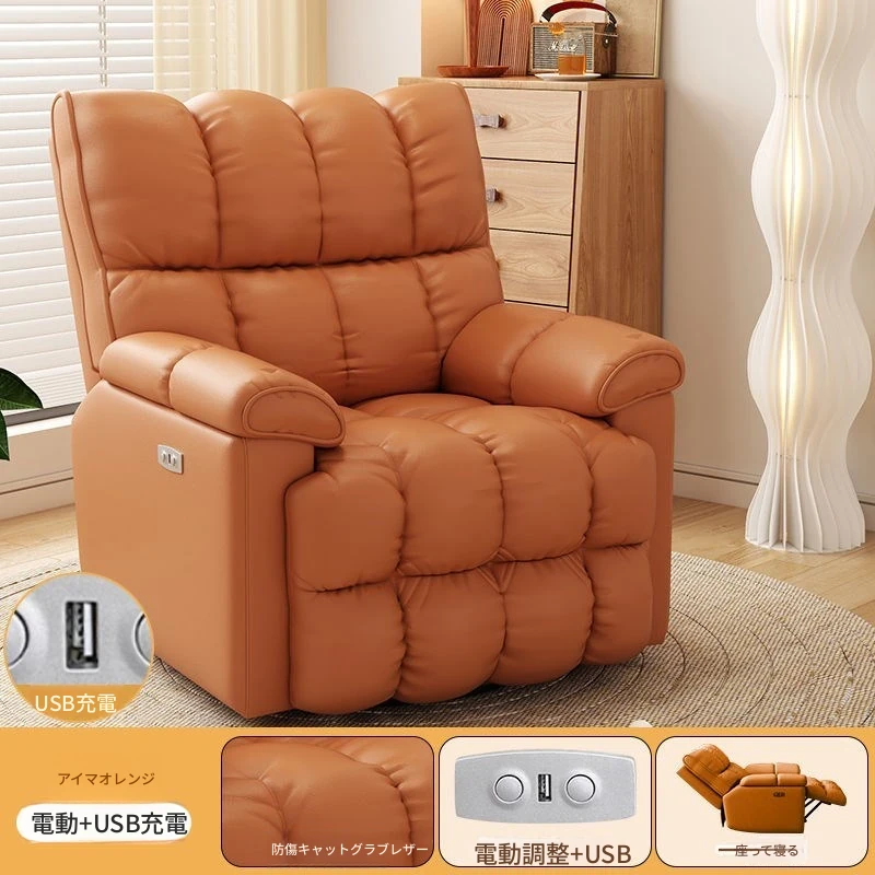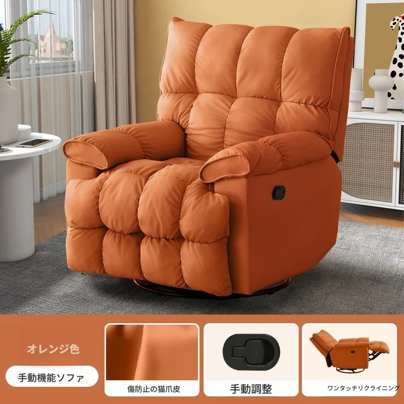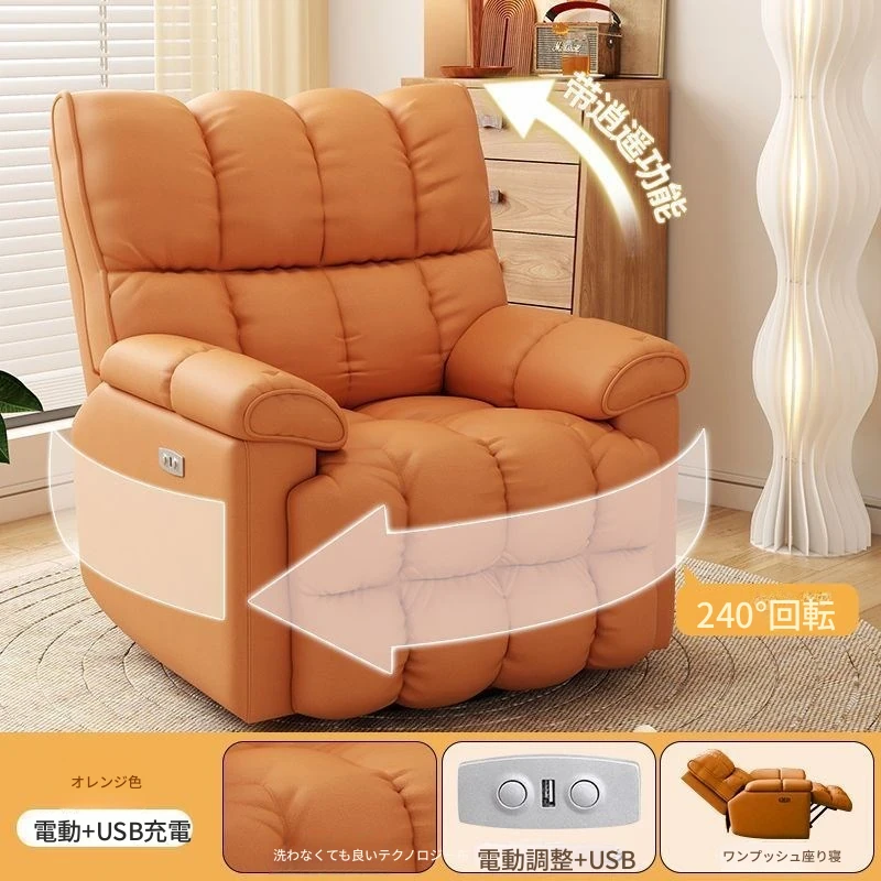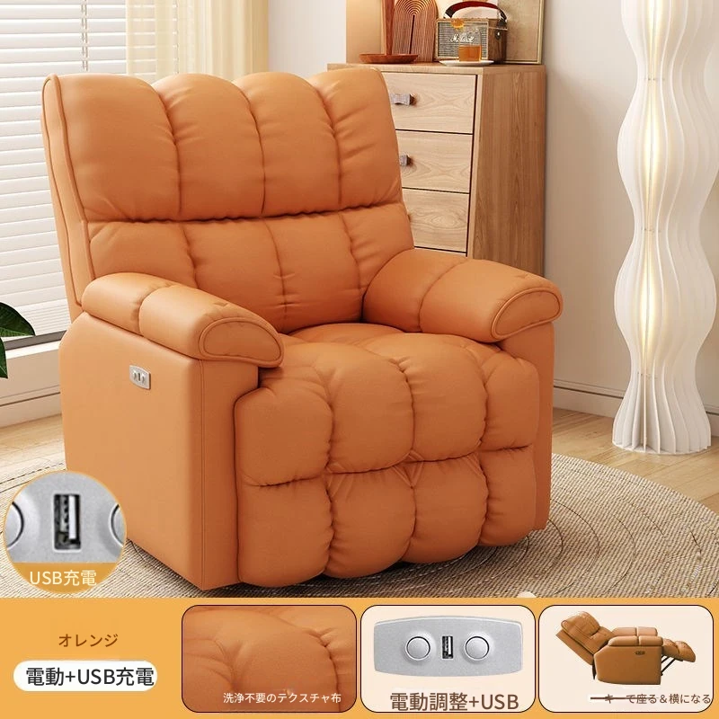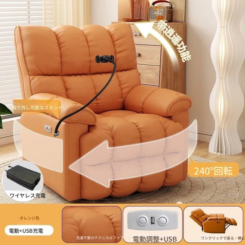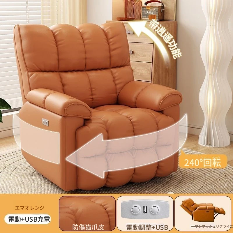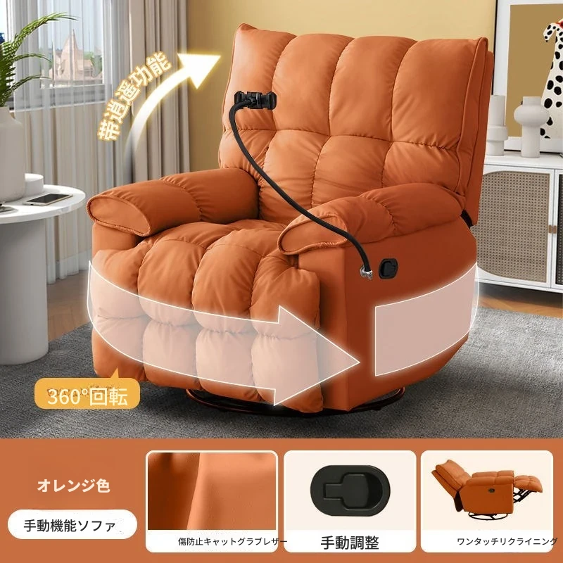 【猫抓皮】オレンジ(ラテックスタイプ)_型番(電動リクライニング+回転+USB)