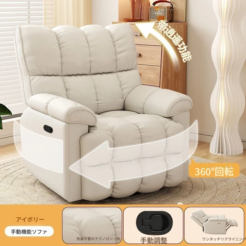 【テクノロジー布】アイボリー(ラテックスタイプ))_型番(手動リクライニング+回転+スマホスタンド)
