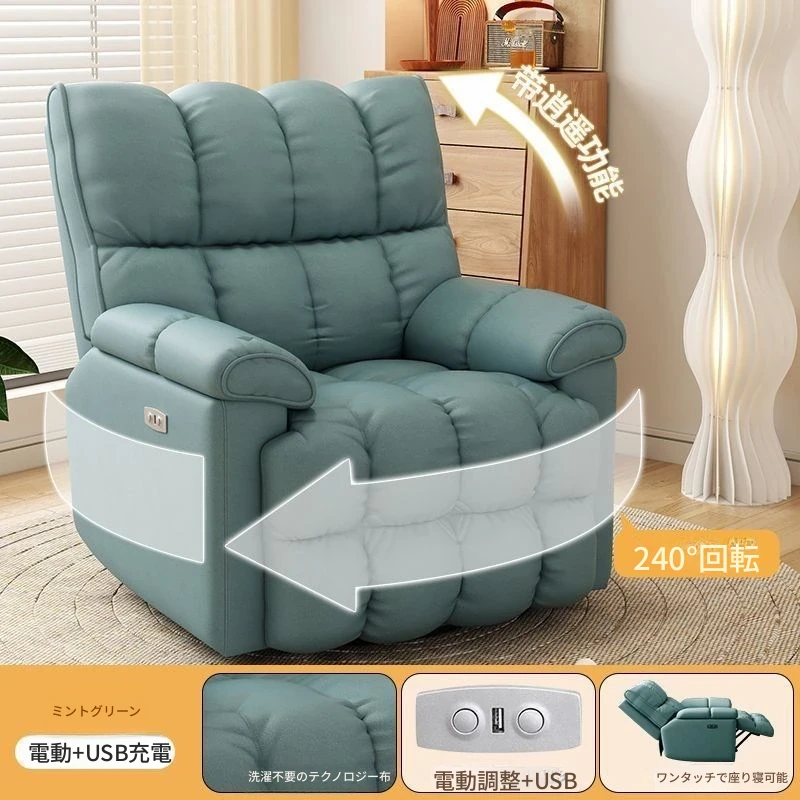 【テクノロジー生地】ミントグリーン(ラテックスタイプ))_型番(電動リクライニング + 回転 + USB)