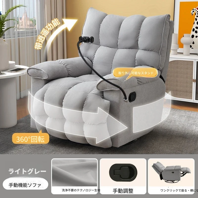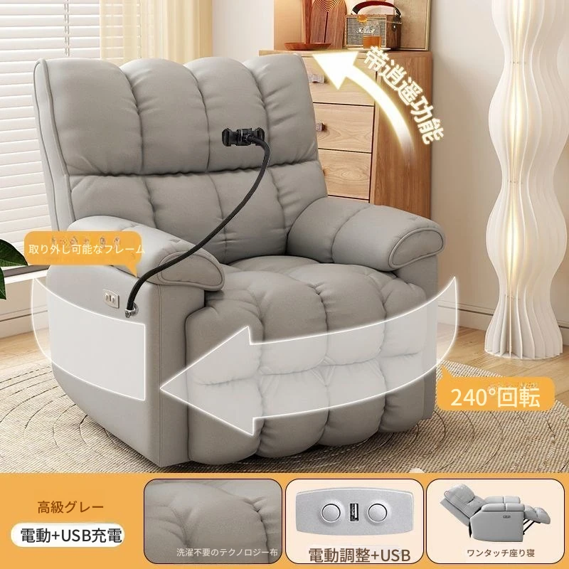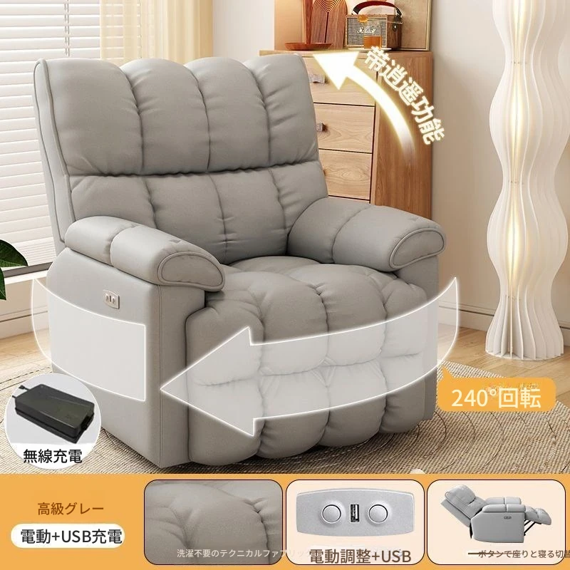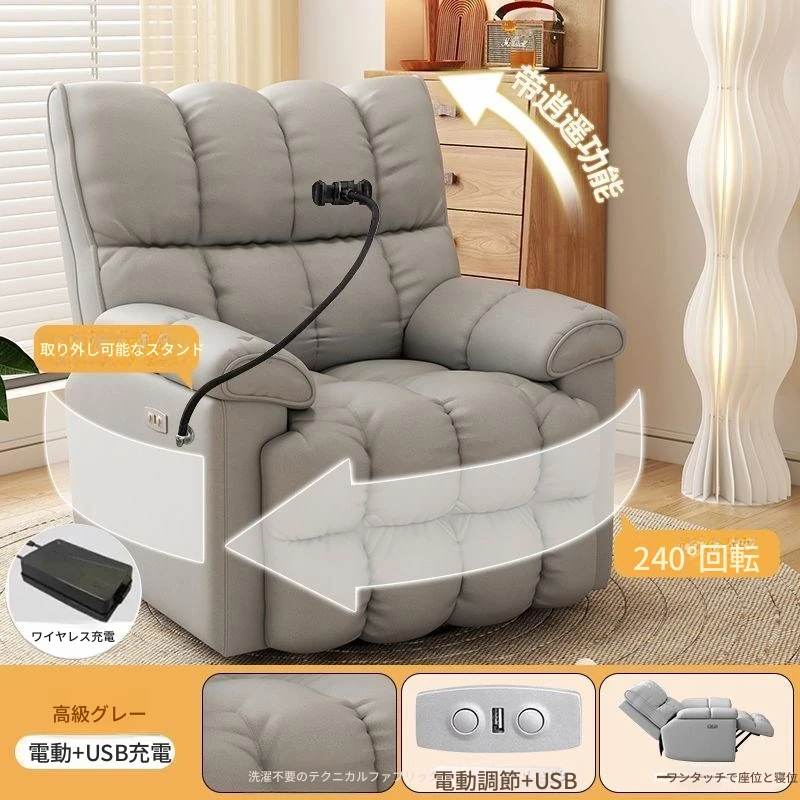 【テクノロジー布】ライトグレー(ラテックスタイプ))_モデル(電動リクライニング回転無線充電スマホスタンド+USB)