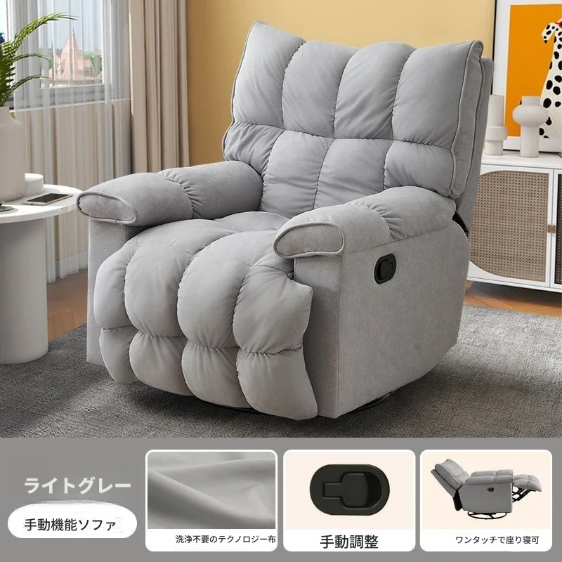 【テクノロジー生地】ライトグレー(ラテックスタイプ))_モデル(手動リクライニング+回転)