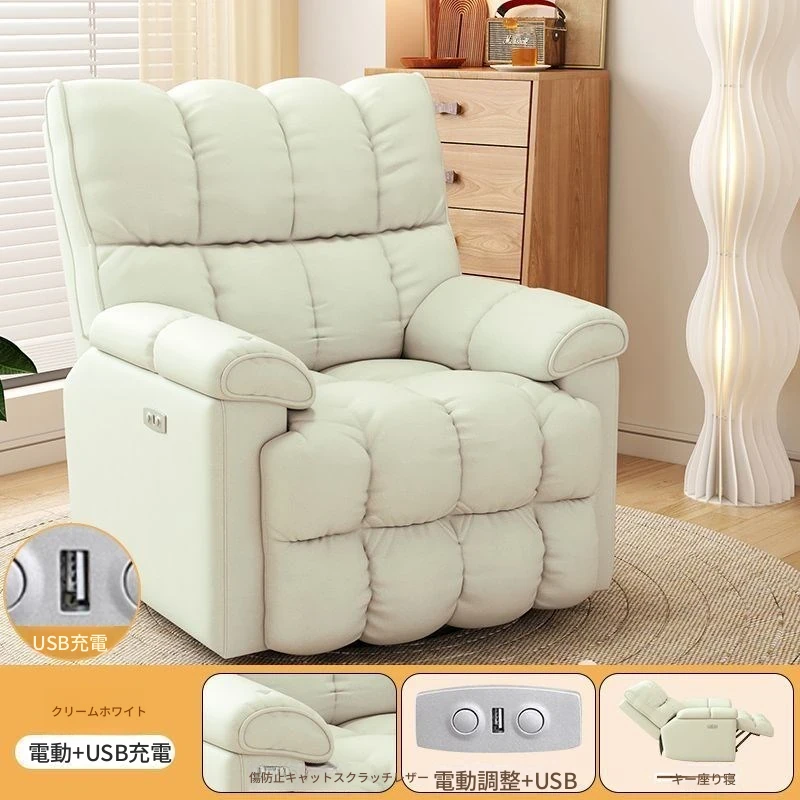 【猫抓皮】クリームホワイト(ラテックスタイプ)_モデル(電動リクライニング+USB)