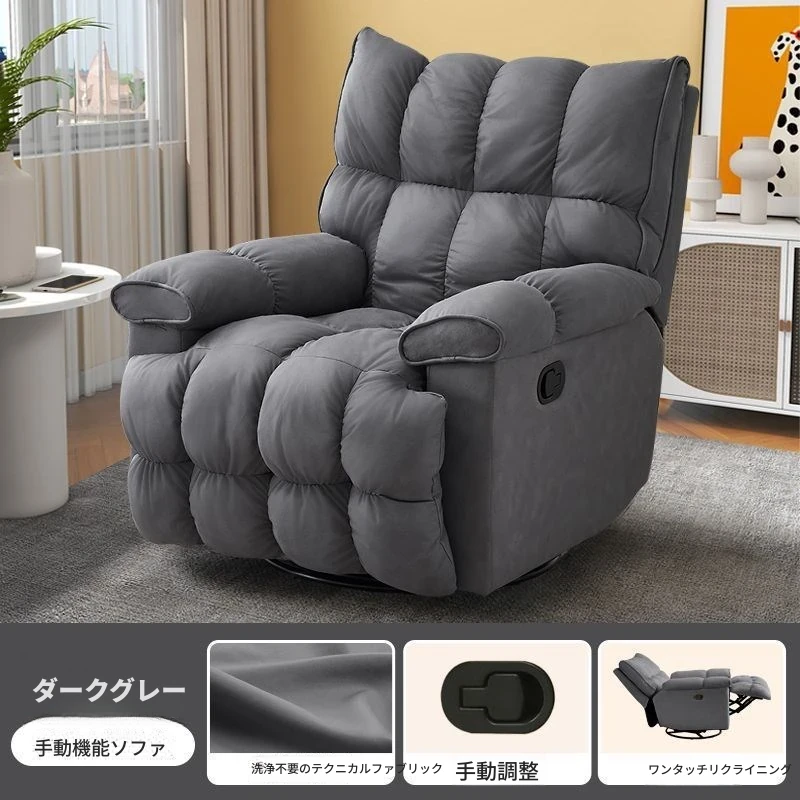 【テクノロジー布】ダークグレー(ラテックスタイプ)_モデル(手動リクライニング+回転機能)