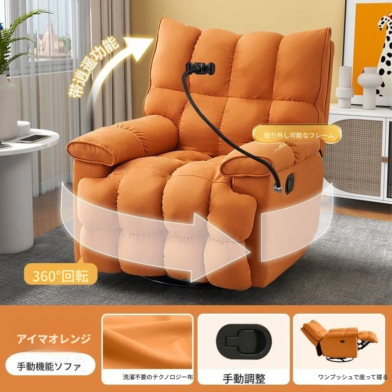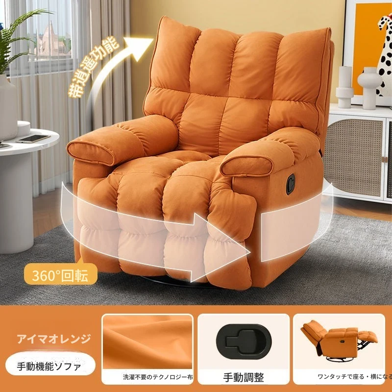 (【テクノロジー布】アイマオレンジ(ラテックスモデル))_型番(手動リクライニング+回転+スマホスタンド)