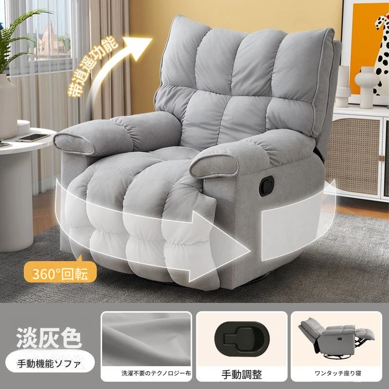 【テクノロジー布】ライトグレー(ラテックスタイプ))_モデル(手動リクライニング+回転+スマホスタンド)