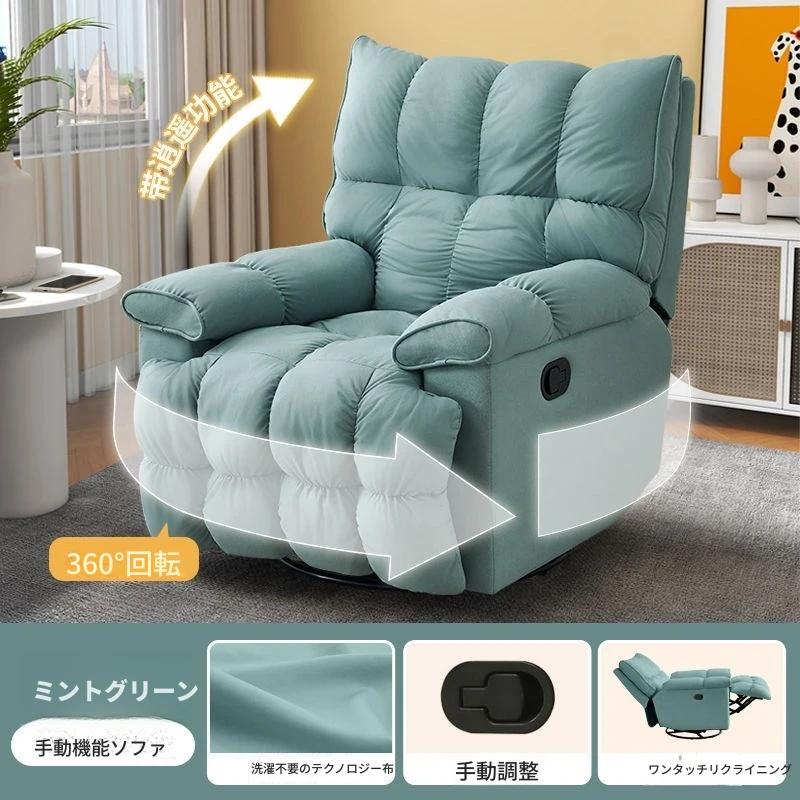 【テクノロジー布】ミントグリーン(ラテックスタイプ))_型番(手動リクライニング+回転+スマホスタンド)