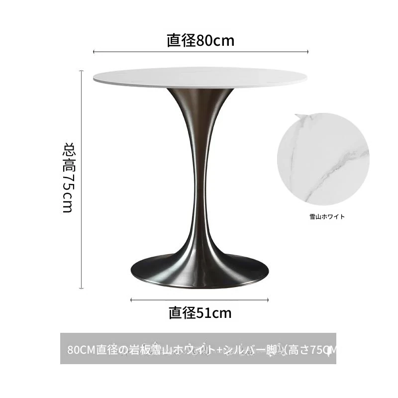 岩板スノー白80直径+シルバー脚 高75cm 天板に模様あり