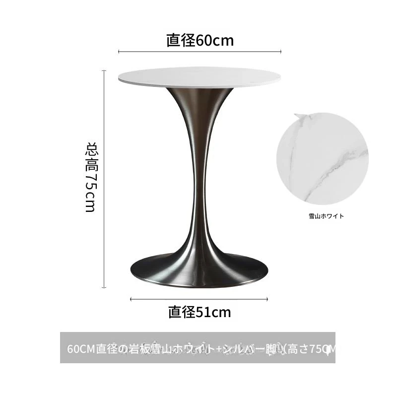 岩板スノー白60直径+シルバー脚 高75cm 天板に模様あり