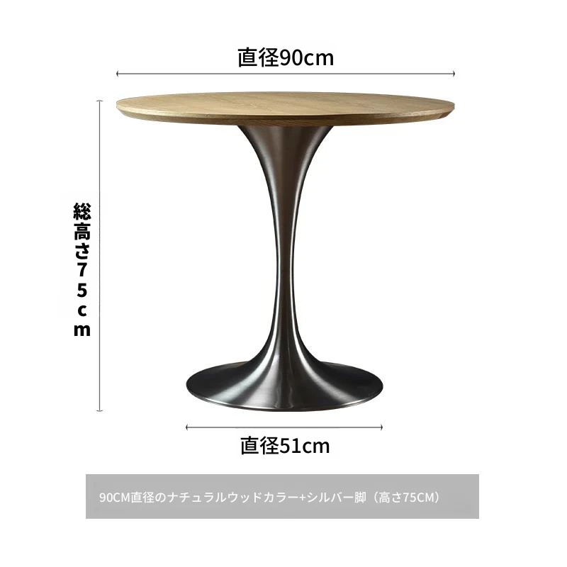 ナチュラルウッド色90直径+シルバー脚 高75cm