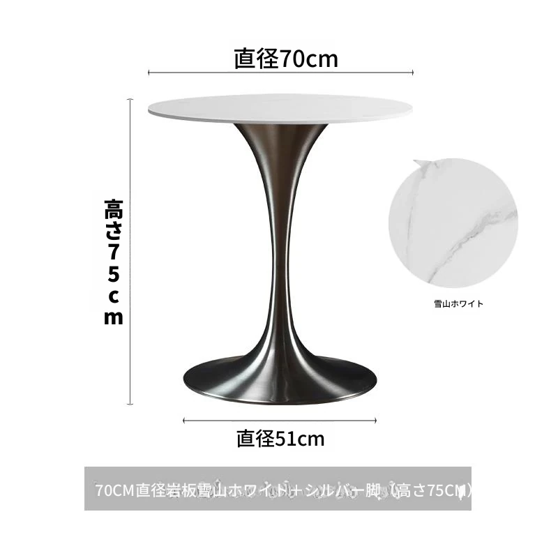 岩板スノー白70直径+シルバー脚 高75cm 天板に模様あり