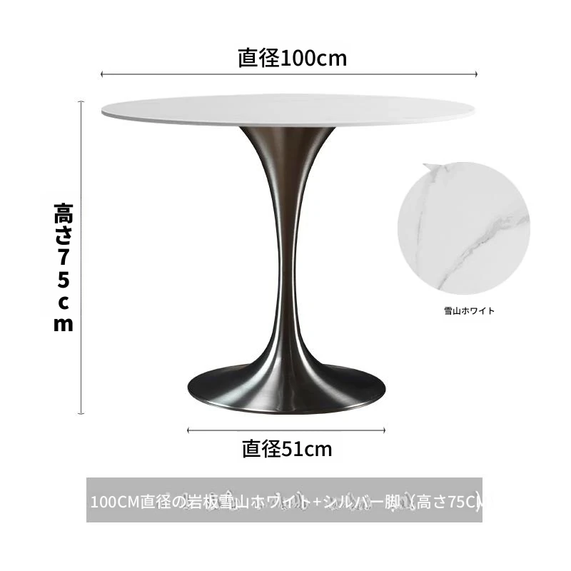 岩板スノー白100直径+シルバー脚 高75cm 天板に模様あり
