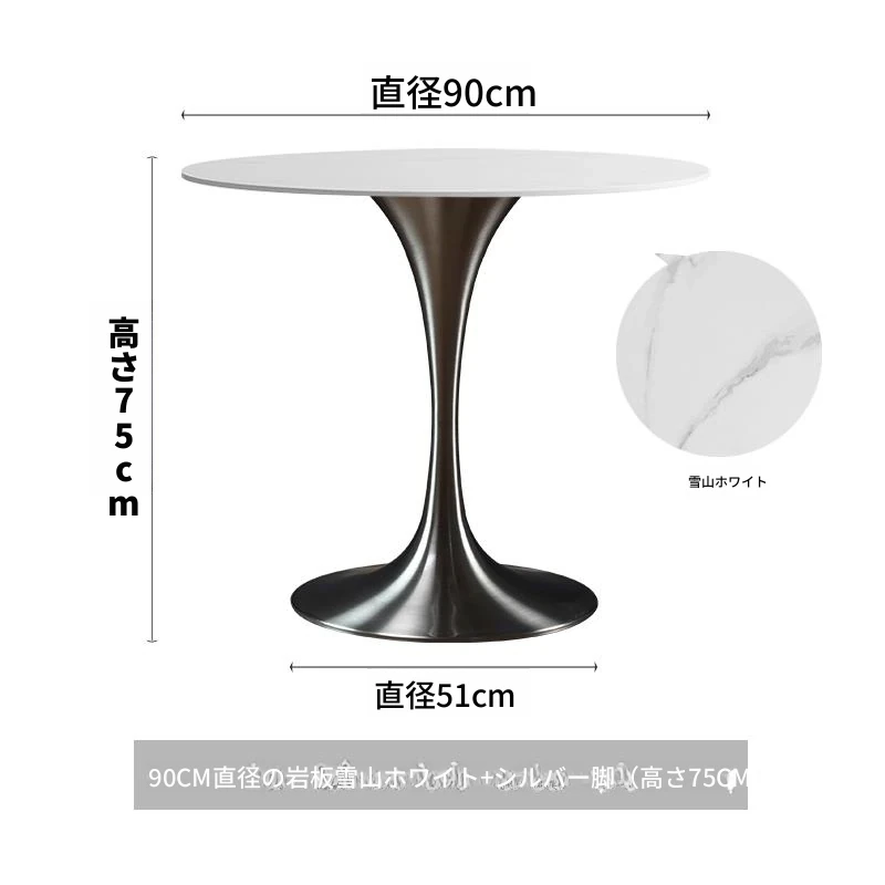 岩板スノー白90直径+シルバー脚 高75cm 天板に模様あり