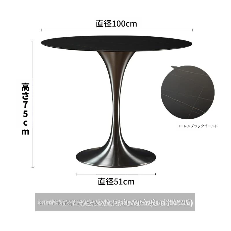 岩板ローランブラックゴールド100直径+シルバー脚 高75cm 天板に模様あり