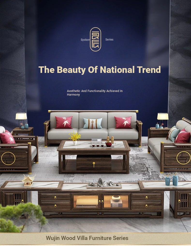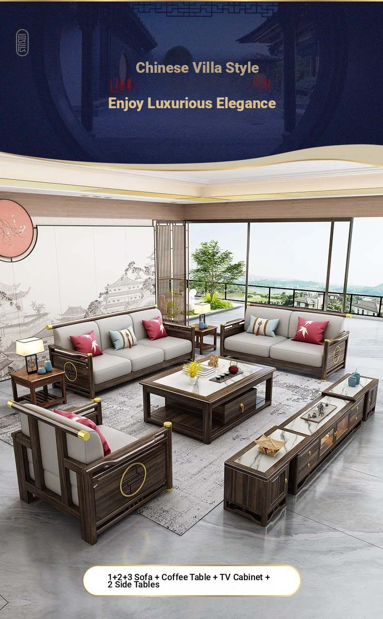 Elegant Blackwood New Chinese Style Solid Wood Sofa for Living Room – Luxurious and Compact Furniture for Villas and Small Spaces. Upgrade Your Home Décor!